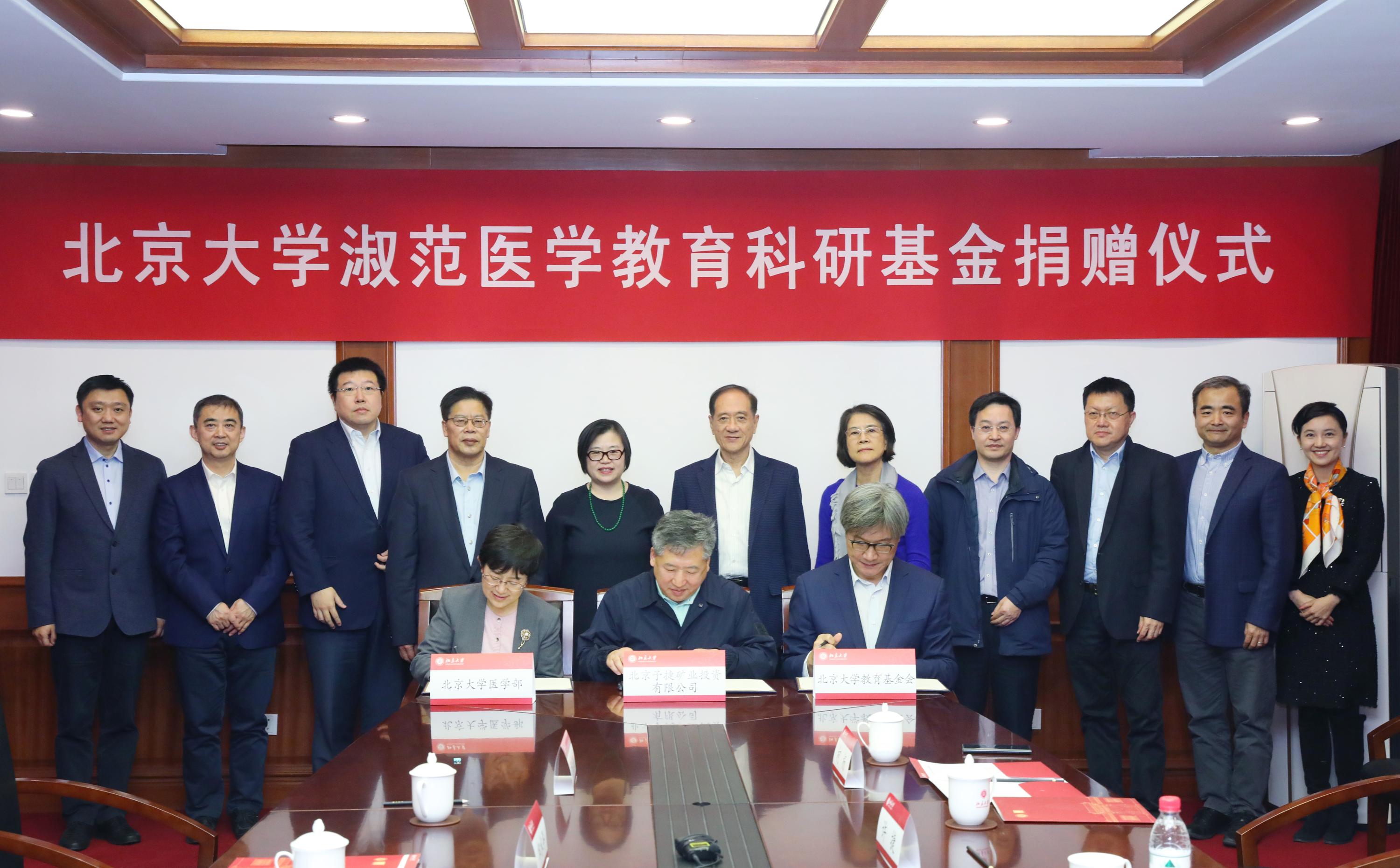 12月6日,在北大醫(yī)學(xué)即將迎來110周年慶典之際,北京予捷礦業(yè)投資有限公司捐資繼續(xù)支持北京大學(xué)淑范醫(yī)學(xué)教育科研基金,支持北大醫(yī)學(xué)部各項事業(yè)的發(fā)展建設(shè),同時捐資設(shè)立前沿交叉學(xué)科研究院淑范醫(yī)學(xué)人文建設(shè)項目,支持科學(xué)技術(shù)與醫(yī)學(xué)史系的學(xué)科建設(shè)。這是胡毅、許捷校友伉儷在北大百年校慶之際設(shè)立淑范教育科研基金之后,再次為母校慷慨捐資。