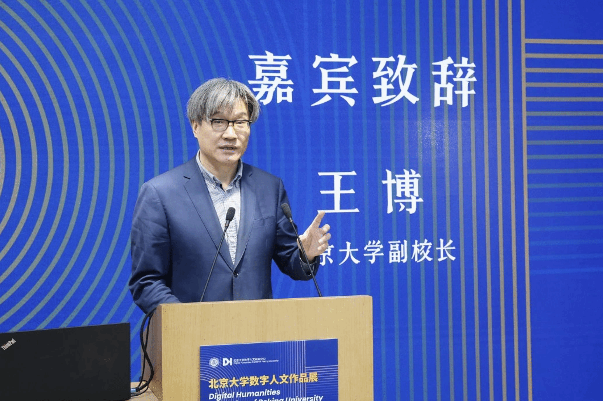 北大數(shù)字人文研究中心主任、信息管理系教授王軍對本屆數(shù)字人文作品展進行了介紹,并感謝學(xué)校領(lǐng)導(dǎo)、各院系師生的支持。