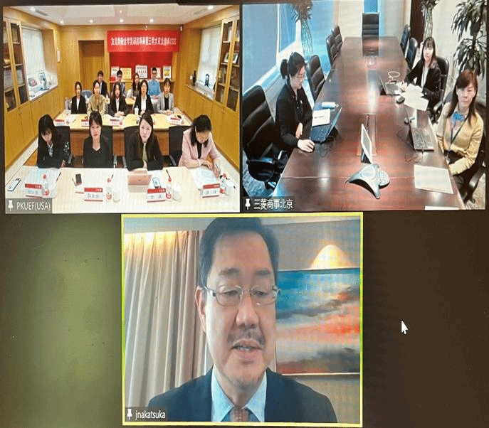 4月22日下午,2021學(xué)年度北京大學(xué)三菱商事國際獎學(xué)金頒獎儀式在北京大學(xué)教育基金會舉行。三菱商事總經(jīng)理中冢潤一郎、北京大學(xué)教育基金會副秘書長趙文莉和獲獎學(xué)生代表等通過線上方式參加了頒獎儀式。