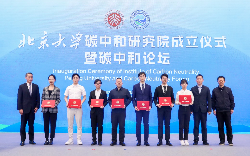 儀式上,樸世龍、王躍奎和北京大學研究生院副院長王天兵為北京大學必和必拓“碳與氣候”博士研究生未名學者獎學金獲得者頒獎。