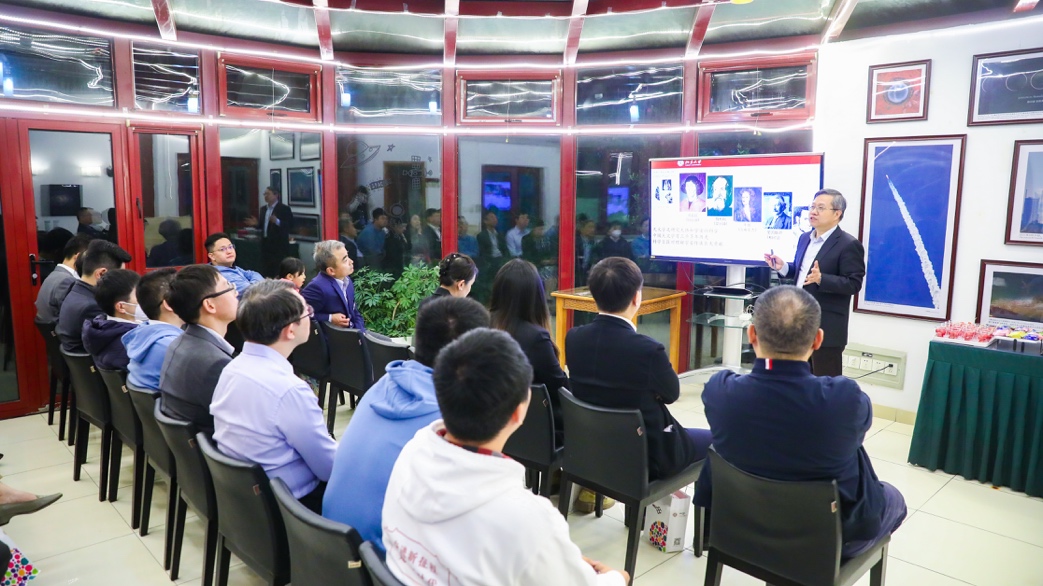 當(dāng)晚,校友們來(lái)到科維理天文與天體物理研究所,副所長(zhǎng)吳學(xué)兵教授為大家介紹了北大天文學(xué)科的發(fā)展現(xiàn)狀,講述了北大人的星空夢(mèng)和探索歷程。校友們?cè)谇嗄晏煳膶W(xué)會(huì)同學(xué)們的指導(dǎo)下用專業(yè)天文望遠(yuǎn)鏡賞月觀星,此次活動(dòng)在溫馨浪漫的氛圍中落下帷幕。