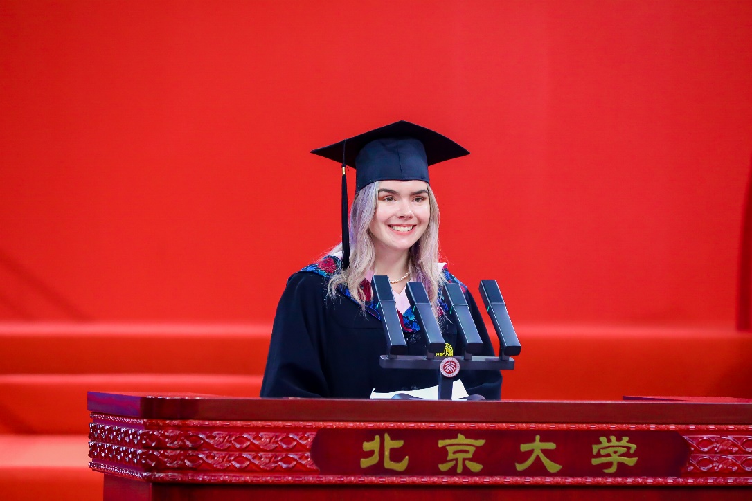 畢業(yè)生代表、光華管理學(xué)院2019級本科生蘇夢蘭是一位來自加拿大的留學(xué)生。在她看來,北大是中國最好的大學(xué),這里有最優(yōu)秀的老師和學(xué)生,和他們在一起學(xué)習(xí)交流,使她更好地認(rèn)識了中國、認(rèn)識了世界,也認(rèn)識了自我。她表示,我們生活在同一個(gè)地球村,立己達(dá)人、同舟共濟(jì),方能共克時(shí)艱、行穩(wěn)致遠(yuǎn)。只要世界青年攜起手來,一定會讓人類大家庭更加生機(jī)盎然。