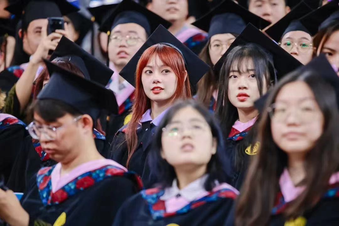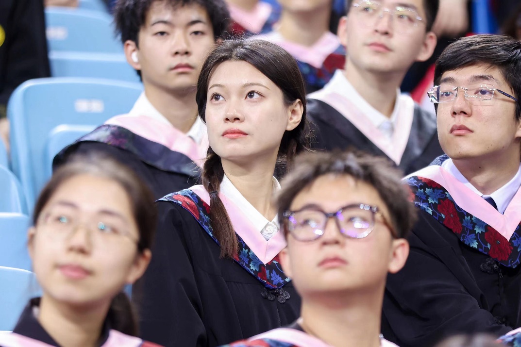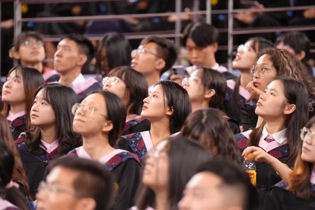 大屏幕上播放著畢業(yè)紀(jì)念片。四年的時(shí)光、1400多個(gè)日夜,承載著大家太多的回憶與不舍。同學(xué)們從稚嫩到成熟、從迷茫到堅(jiān)定,即將帶著師長的美好祝福與諄諄囑托,走向新的人生旅程。