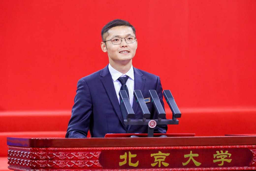 畢業(yè)生代表集成電路學院2018級博士研究生楊凌濛講述了他從“博士生”到“博士”的蛻變。在北大他去掉了生疏、收獲了嫻熟,去掉了生澀、收獲了成長;去掉了生硬,收獲了柔和。他說道,“常為新”的北大見證了無數(shù)學子在不同領域里用自己的“心血”踐行著“為新”的使命。楊凌濛代表畢業(yè)生請母校放心,無論身在何處,從事何種職業(yè),他們都必將堅守北大人“愛國、進步、民主、科學”的精神,用心寫好新時代的中國故事。