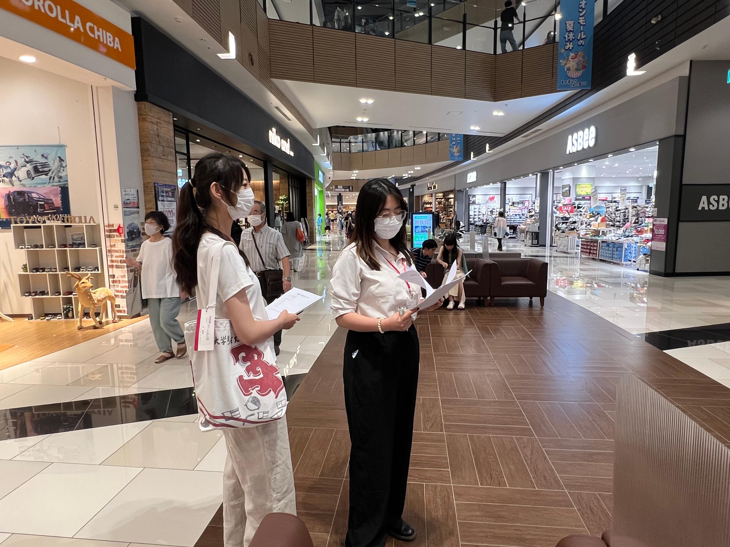 同日下午,北京大學(xué)研修團(tuán)在永旺夢(mèng)樂城進(jìn)行以“人口老齡化帶來的問題與解決對(duì)策”為主題的問卷調(diào)查。借此機(jī)會(huì),同學(xué)們與日本普通市民進(jìn)行了進(jìn)一步的交流,就中日兩國(guó)共同存在的老齡化問題分享了彼此的經(jīng)驗(yàn)和見解。