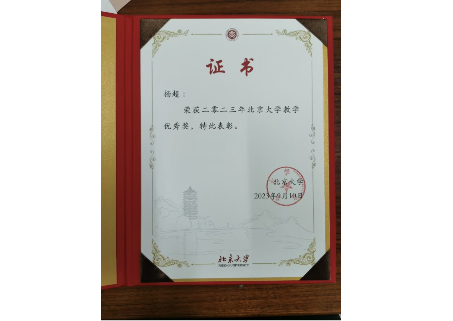 楊超榮獲2023年北京大學教學優(yōu)秀獎