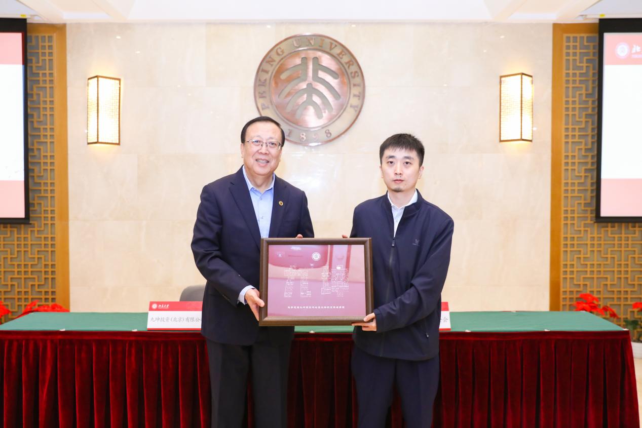 儀式之前,北京大學(xué)校長龔旗煌會見了王琛、姚齊聰一行。他感謝九坤投資年輕且優(yōu)秀的創(chuàng)業(yè)團隊對北大基礎(chǔ)學(xué)科和人才培養(yǎng)的全力支持,贊賞姚齊聰校友樹立了年輕校友回饋母校的典范并起到引領(lǐng)帶動作用,期待九坤投資與北大攜手共同成長,未來為國家的基礎(chǔ)學(xué)科建設(shè)作出更重要的貢獻。