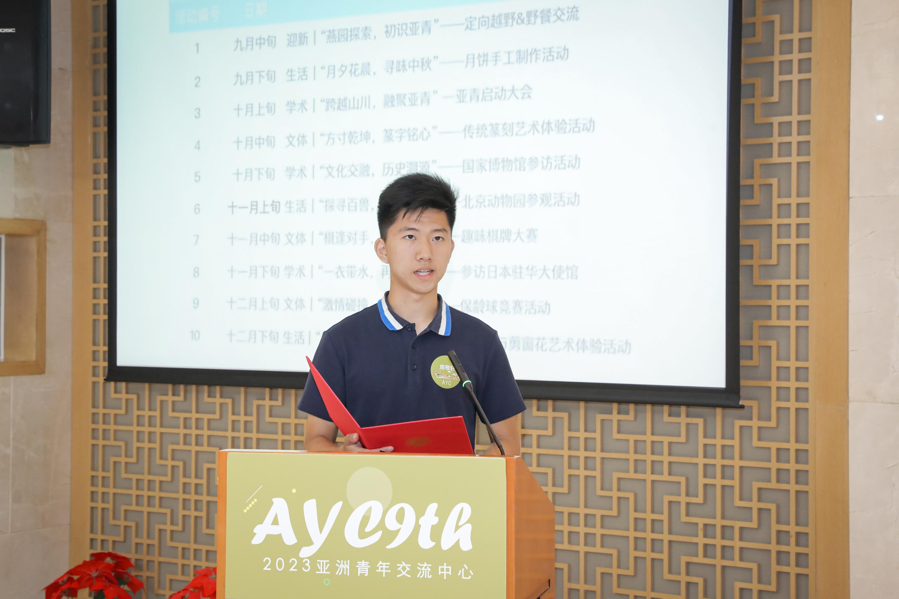 亞洲青年交流中心自治委員會代表、社會學系2021級本科生周敬軒介紹了本期項目的概況和交流計劃,并表示自治委員會的同學們將會及時總結(jié)經(jīng)驗,將活動與中華民族傳統(tǒng)文化相結(jié)合,構(gòu)建亞洲青年友誼的橋梁。
