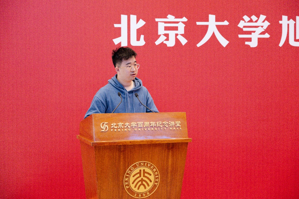 學(xué)生代表、化學(xué)與分子工程學(xué)院2022級(jí)本科生劉家恒講述了他參與講堂藝術(shù)實(shí)踐項(xiàng)目、接受藝術(shù)熏陶和實(shí)踐鍛煉的成長故事,并將自己所創(chuàng)作的數(shù)字雕塑3D打印作品“書中自有多巴胺”贈(zèng)予楊勛先生,表達(dá)對其捐資善舉的衷心感謝。