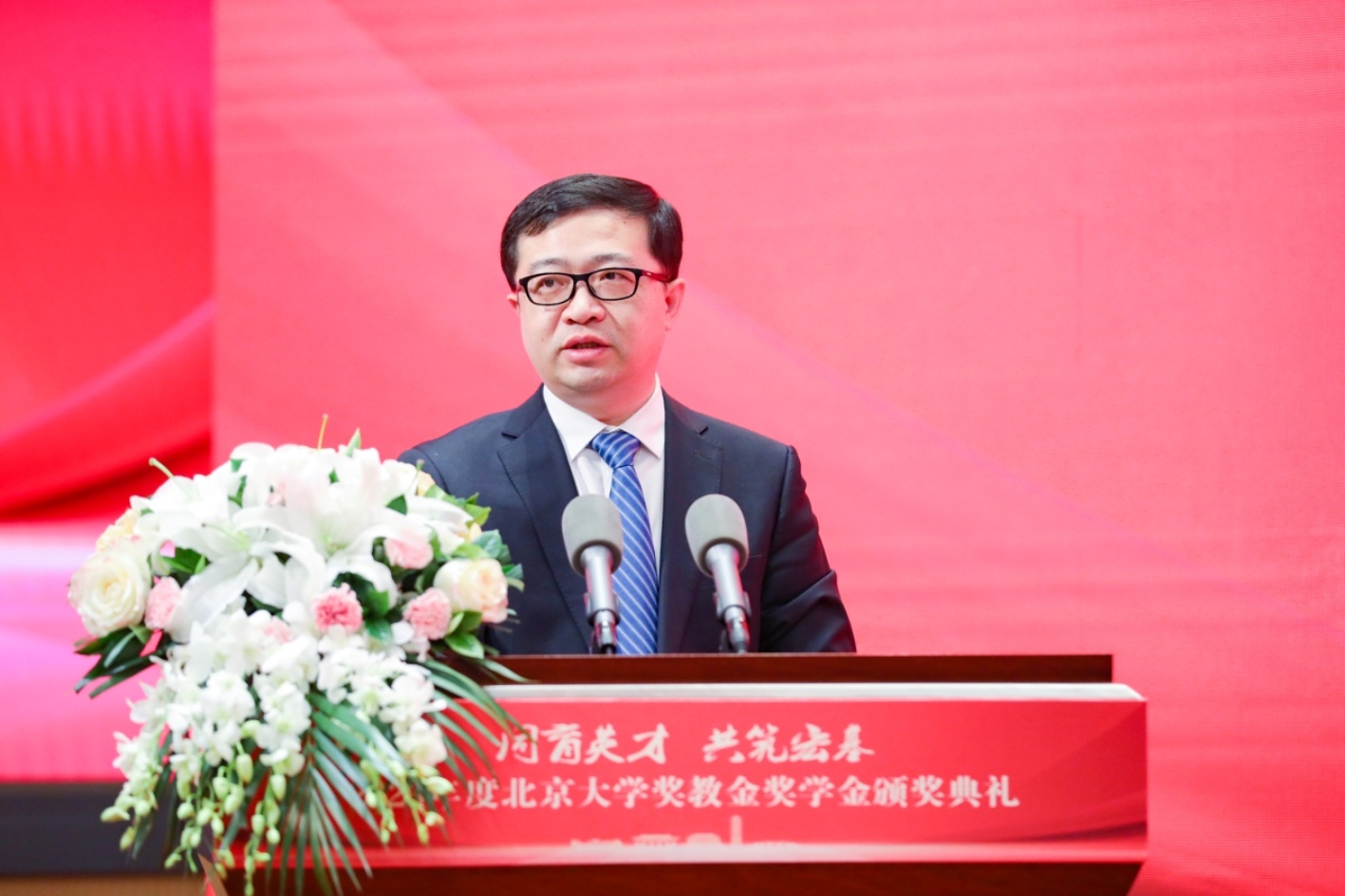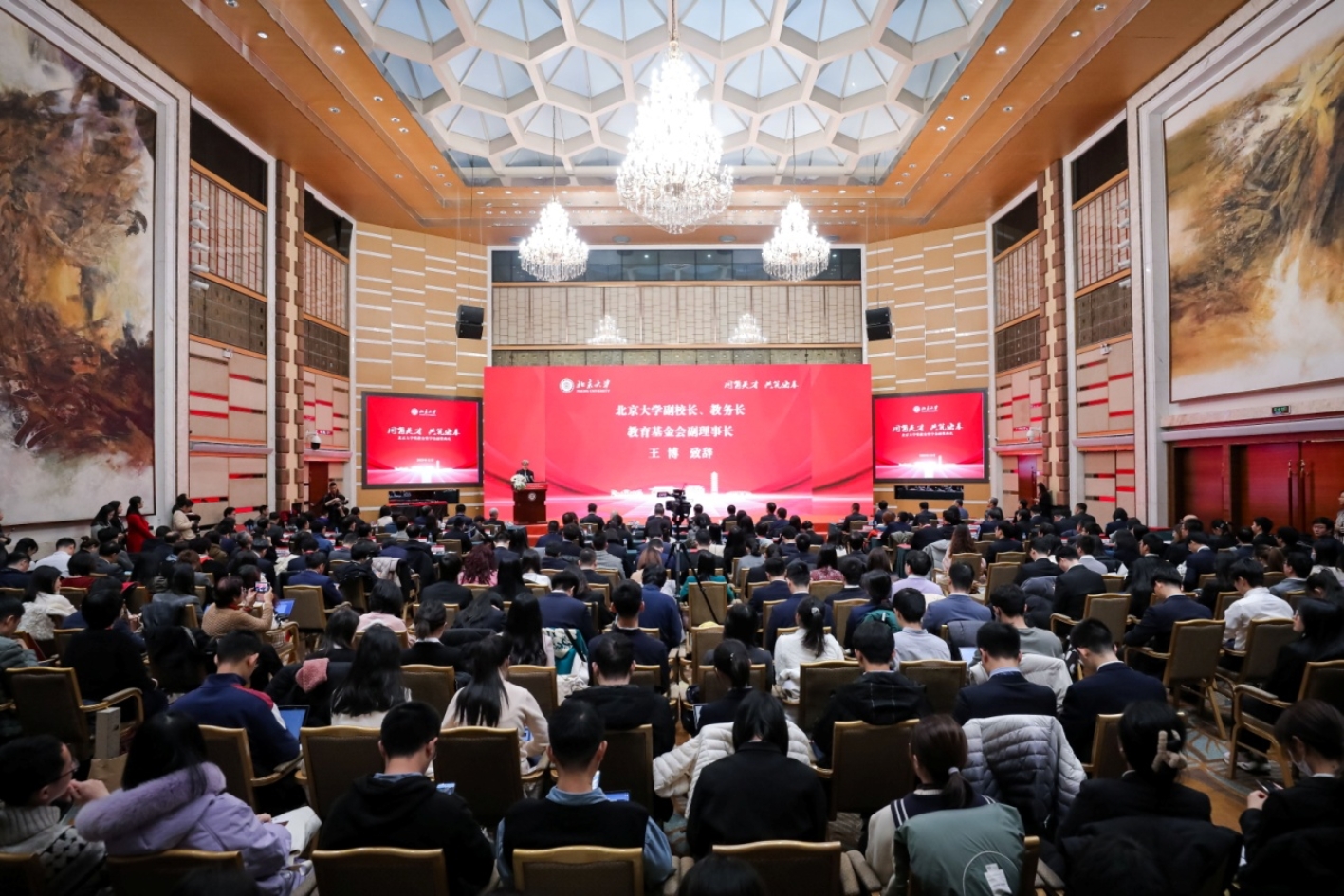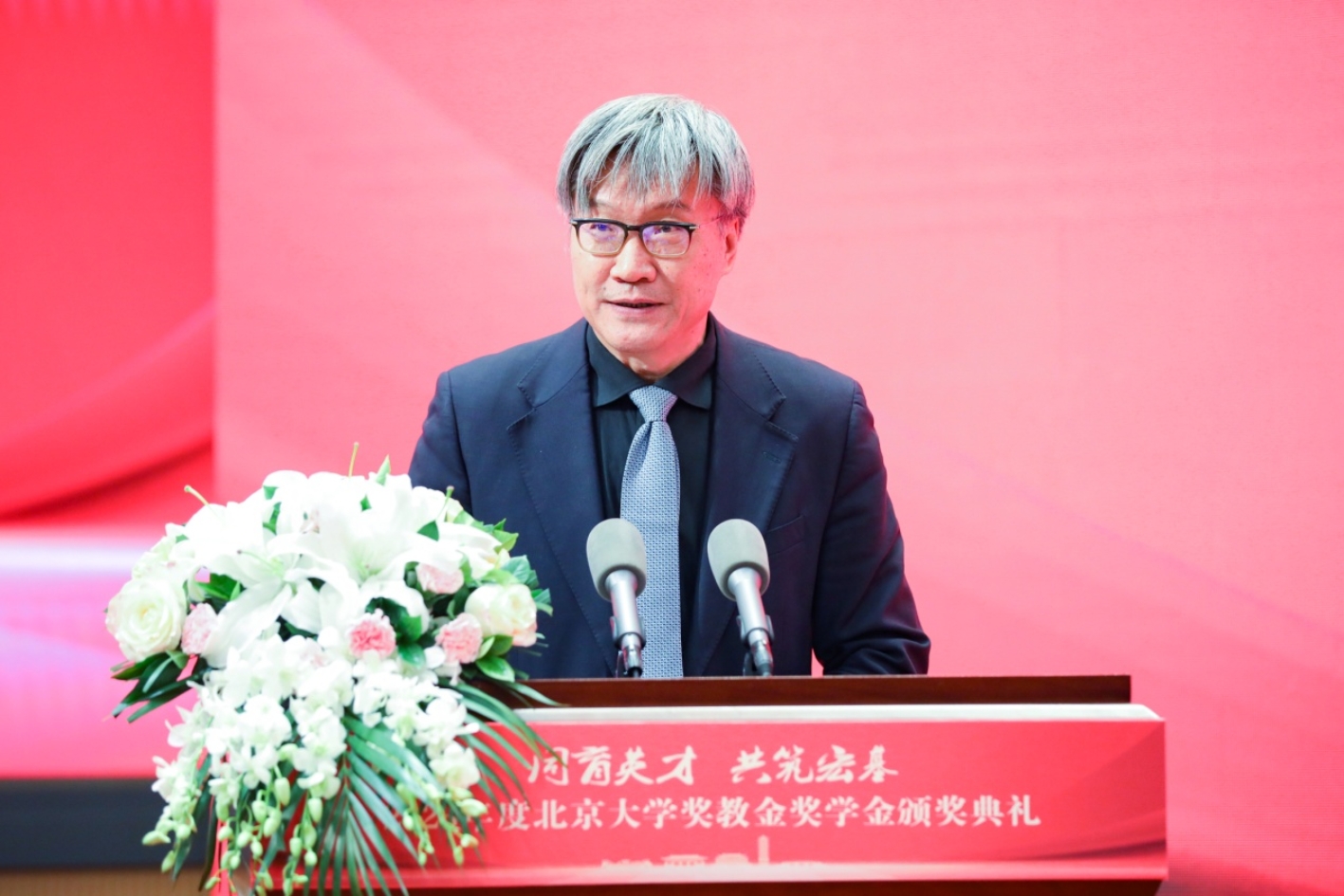 王博代表學(xué)校致辭。他介紹了獎(jiǎng)教金、獎(jiǎng)助學(xué)金的設(shè)立和評(píng)審情況,感謝所有在北大捐資設(shè)獎(jiǎng)的機(jī)構(gòu)和個(gè)人。他表示,獎(jiǎng)教金、獎(jiǎng)助學(xué)金不僅是對(duì)師生的鼓勵(lì),更是對(duì)北大的信任,對(duì)教育、人才、未來(lái)的殷切期望,是學(xué)校不斷進(jìn)步的重要支撐力量。北大的優(yōu)勢(shì)在于得天下英才而育之、聚天下英才而用之、任天下英才而成就之。學(xué)校將扎根中國(guó)大地辦大學(xué),走出一條建設(shè)中國(guó)特色世界一流大學(xué)的新路,當(dāng)好中國(guó)式現(xiàn)代化建設(shè)的排頭兵、先鋒隊(duì)。他期待海內(nèi)外廣大校友和社會(huì)各界朋友與北大攜手并肩,共同建設(shè)好北大,始終與祖國(guó)和人民同心奮斗,為實(shí)現(xiàn)中華民族偉大復(fù)興的夢(mèng)想貢獻(xiàn)力量。