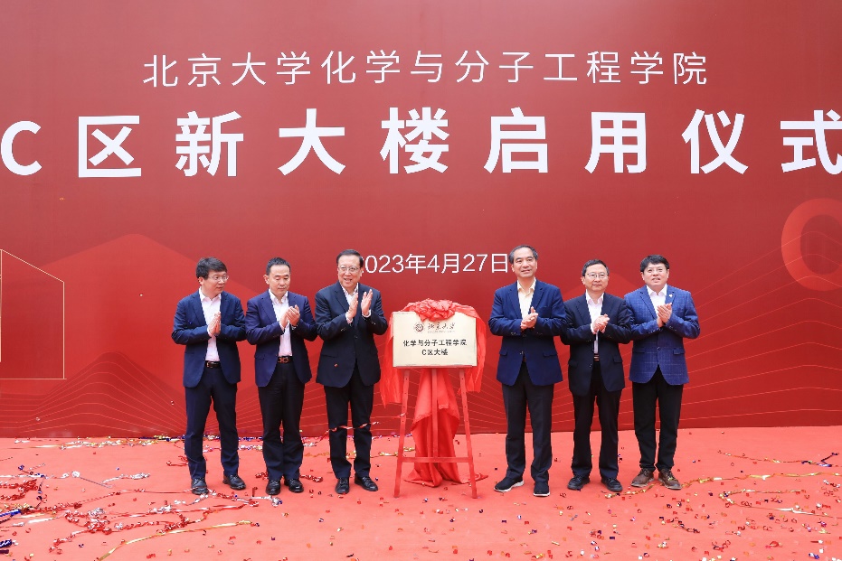 4月27日上午,北京大學(xué)化學(xué)與分子工程學(xué)院C區(qū)新大樓啟用儀式在化學(xué)學(xué)院C區(qū)廣場舉行。北京大學(xué)黨委書記郝平,校長、中國科學(xué)院院士龔旗煌,中山大學(xué)校長、中科院院士高松,北京大學(xué)名譽(yù)校董、松禾資本創(chuàng)始合伙人、松禾創(chuàng)業(yè)投資有限公司董事長、北京大學(xué)化學(xué)學(xué)院1981級校友厲偉先生,北京大學(xué)副校長、總務(wù)長董志勇,北京大學(xué)化學(xué)學(xué)院院長陳興教授共同為新大樓揭牌,標(biāo)志著化學(xué)學(xué)院C區(qū)新大樓正式啟用。
