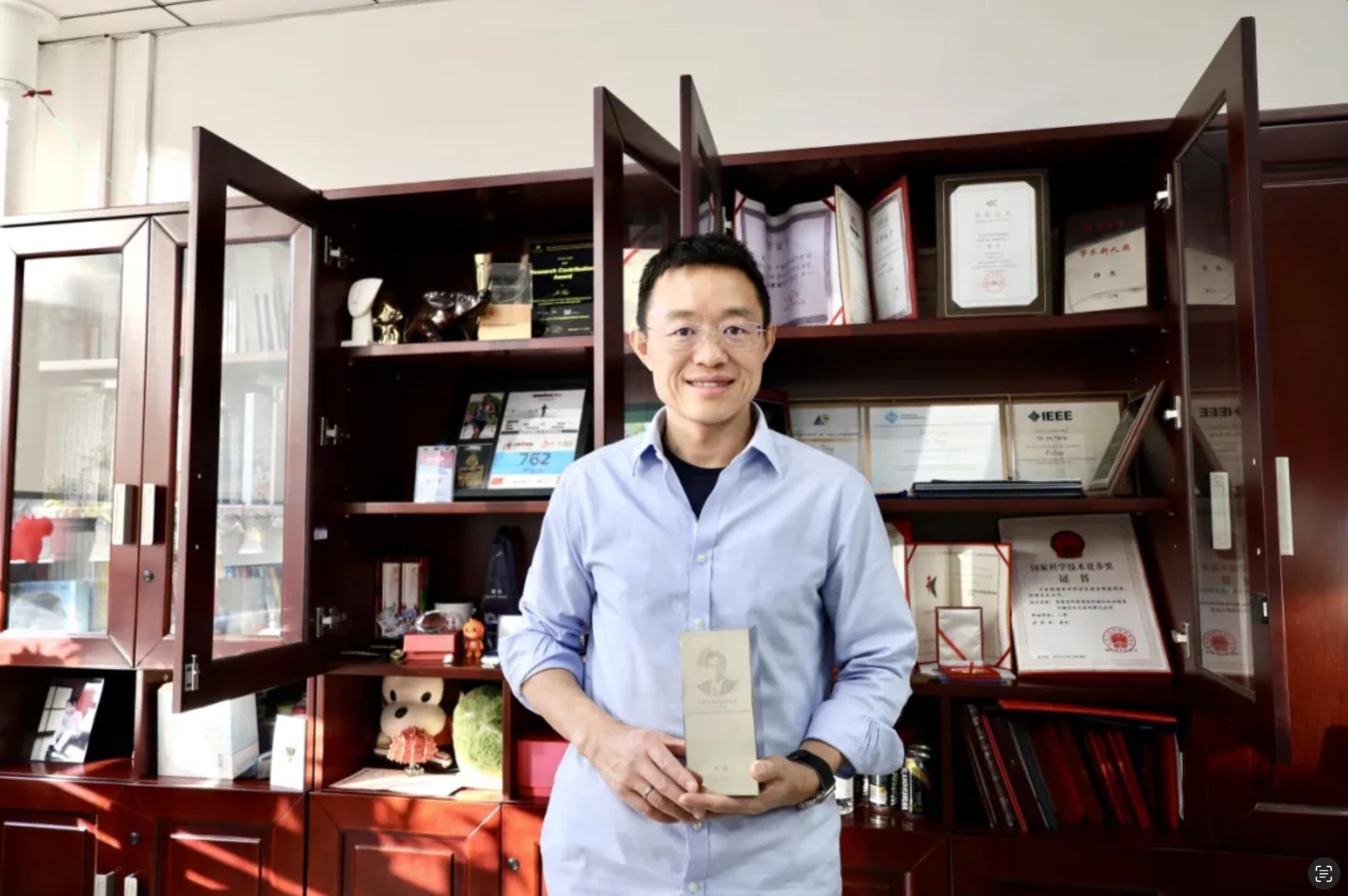 唐杰手持沉甸甸的王選杰出青年學(xué)者獎(jiǎng)獎(jiǎng)杯