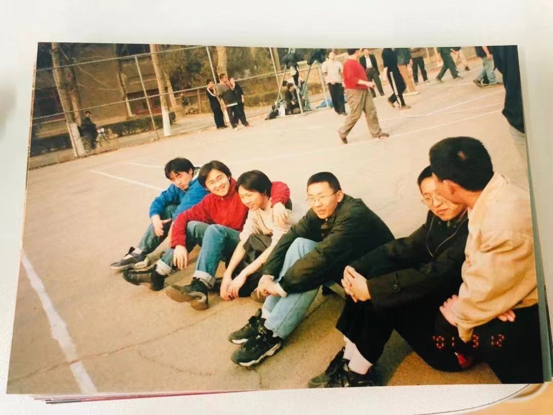 2001年,董彬(左二)和同學(xué)們在二體籃球場
