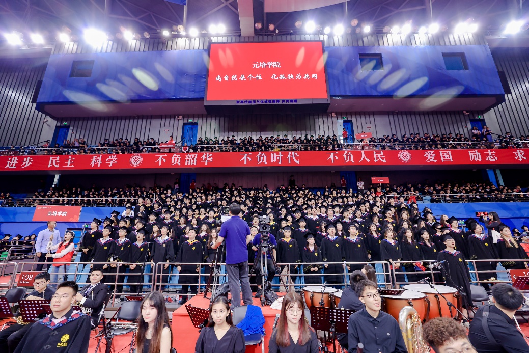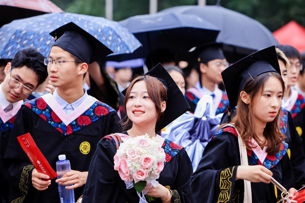 龔旗煌以院系為單位宣布授予2024屆本科畢業(yè)生學(xué)士學(xué)位。各院系畢業(yè)生依次起立,喊出各具專業(yè)特色的畢業(yè)口號(hào):“萬(wàn)卷詩(shī)書(shū)堪用事,一塔湖圖總故鄉(xiāng)” “大學(xué)堂開(kāi),法律門(mén)啟;安邦濟(jì)世,正義恒立”“一馬當(dāng)先,成才報(bào)國(guó)”“化腐朽為神奇,學(xué)宇宙之奧秘”“工道自然成,學(xué)為家國(guó)夢(mèng)”……響亮的口號(hào)回蕩在邱德拔體育館上空,這是畢業(yè)生們對(duì)母校、對(duì)祖國(guó)的莊嚴(yán)承諾,從此,他們與這永遠(yuǎn)的校園血脈相連,也將青春熱血與個(gè)人理想融匯進(jìn)時(shí)代發(fā)展的滾滾洪流之中。