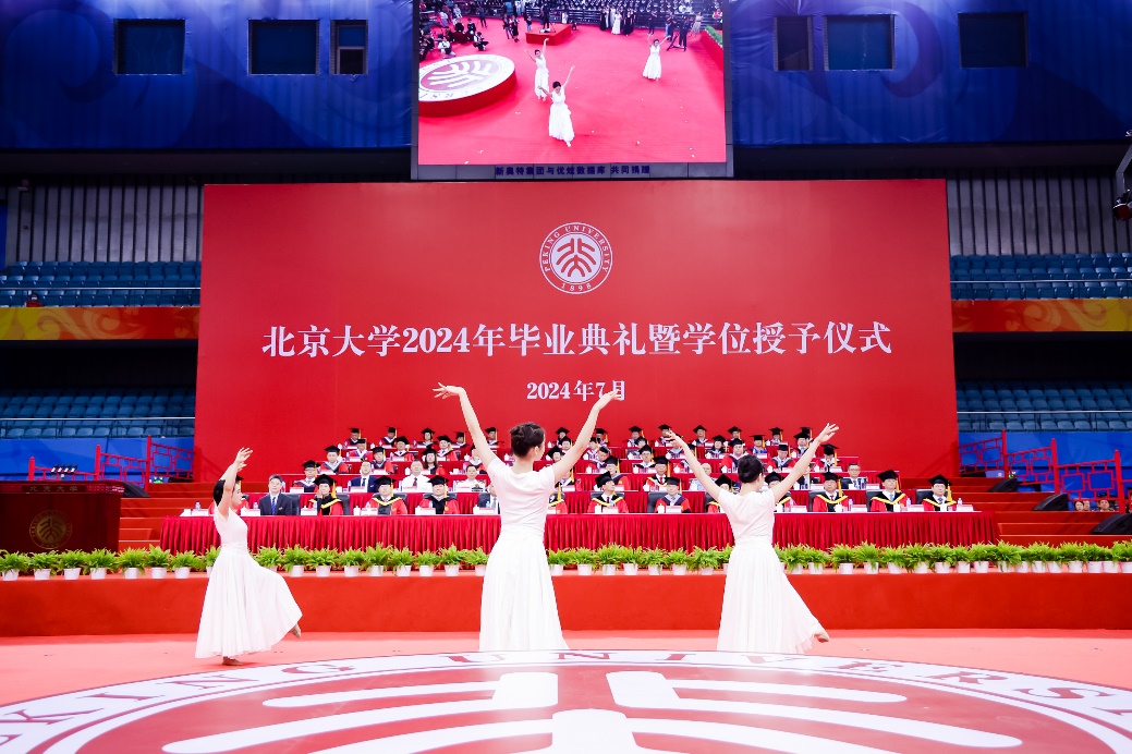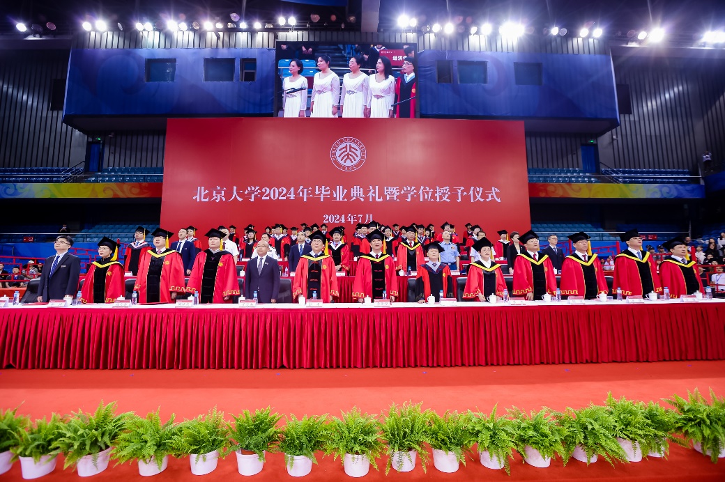 7月2日上午,北京大學(xué)2024年本科生畢業(yè)典禮暨學(xué)位授予儀式在邱德拔體育館舉行。