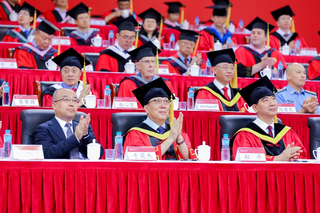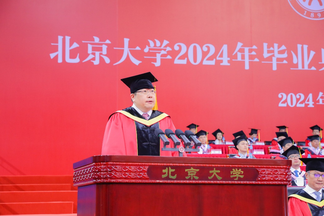 龔旗煌向畢業(yè)生們提出三點(diǎn)期望:打牢基礎(chǔ),涵養(yǎng)創(chuàng)新源泉,用探索精神和創(chuàng)新活力為國(guó)家發(fā)展塑造新動(dòng)能新優(yōu)勢(shì);跨界融通,拓展前行道路,以多元立體視角審視時(shí)代課題;追求卓越,勇攀人生高峰,不懼挑戰(zhàn),升華自我。他希望,同學(xué)們勇做走在時(shí)代前列的北大人,擔(dān)負(fù)起強(qiáng)國(guó)建設(shè)的歷史重任,書(shū)寫(xiě)無(wú)愧于時(shí)代的壯麗篇章。