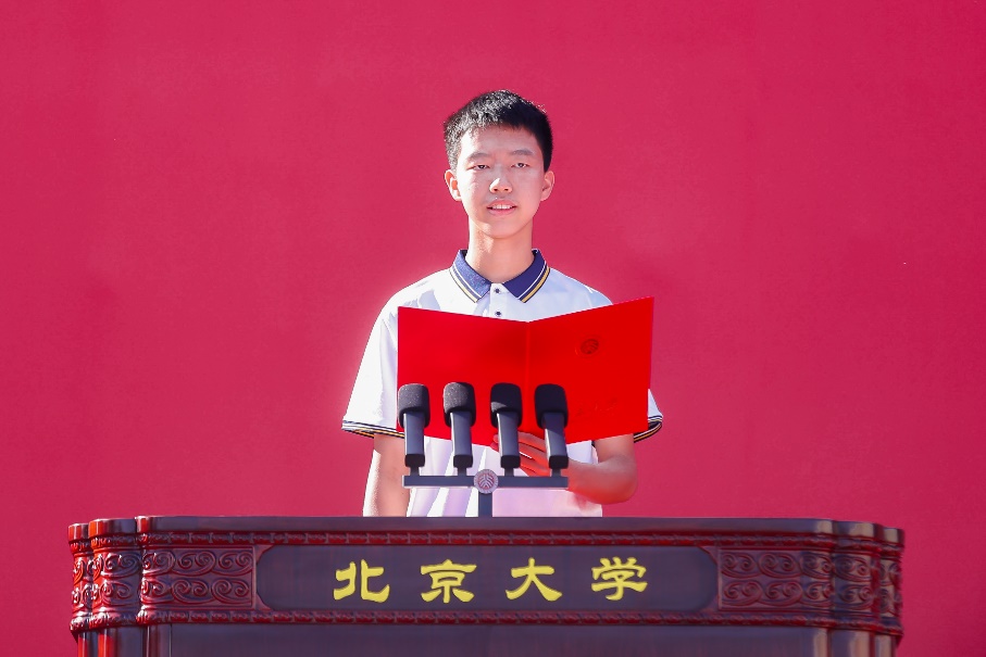 新生代表、中國(guó)語(yǔ)言文學(xué)系2024級(jí)本科生陳鵬宇從初中起就樹(shù)立了考北大的信念,而今,他終于可以伸手觸碰到這座憧憬中的燕園。經(jīng)過(guò)嚴(yán)格的軍訓(xùn)和充滿啟發(fā)性的新生訓(xùn)練營(yíng),陳鵬宇對(duì)北大有了更深的理解,對(duì)“北大人”有了更加直觀的認(rèn)識(shí)。“未名湖水是知識(shí)的海洋”,在“一塔湖圖”之間,他最大的愿望就是“取一瓢飲”,把自己對(duì)文字的熱愛(ài)由感性的觸動(dòng)轉(zhuǎn)化為嚴(yán)密的體察,從書(shū)海的一角窺見(jiàn)“進(jìn)一寸有進(jìn)一寸的歡喜”,收獲悟道的樂(lè)趣。