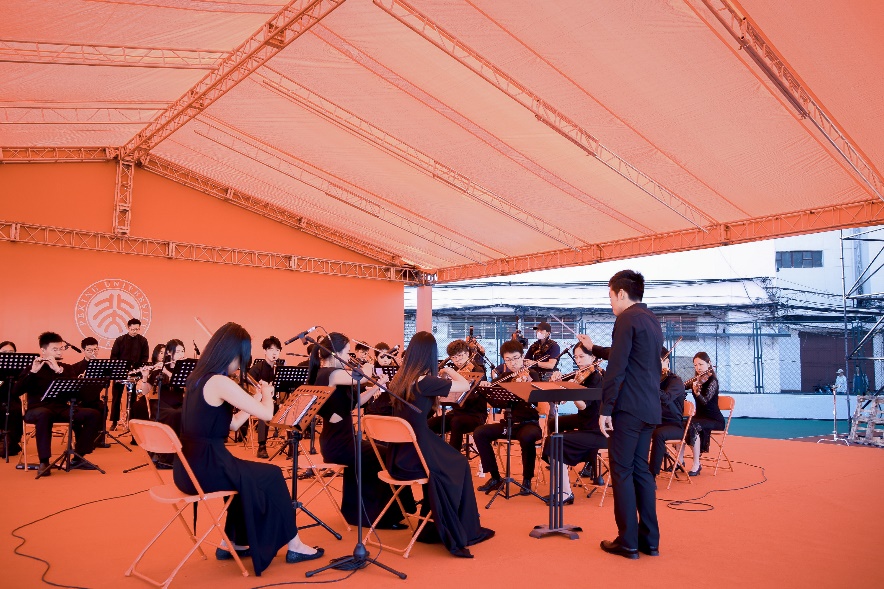 北京大學(xué)教工合唱團(tuán)的老師們,學(xué)生交響樂(lè)團(tuán)、學(xué)生合唱團(tuán)、風(fēng)雷街舞社的同學(xué)們,校園十佳歌手代表,以及附屬幼兒園的小朋友們,為大家奉獻(xiàn)了精彩的暖場(chǎng)表演。