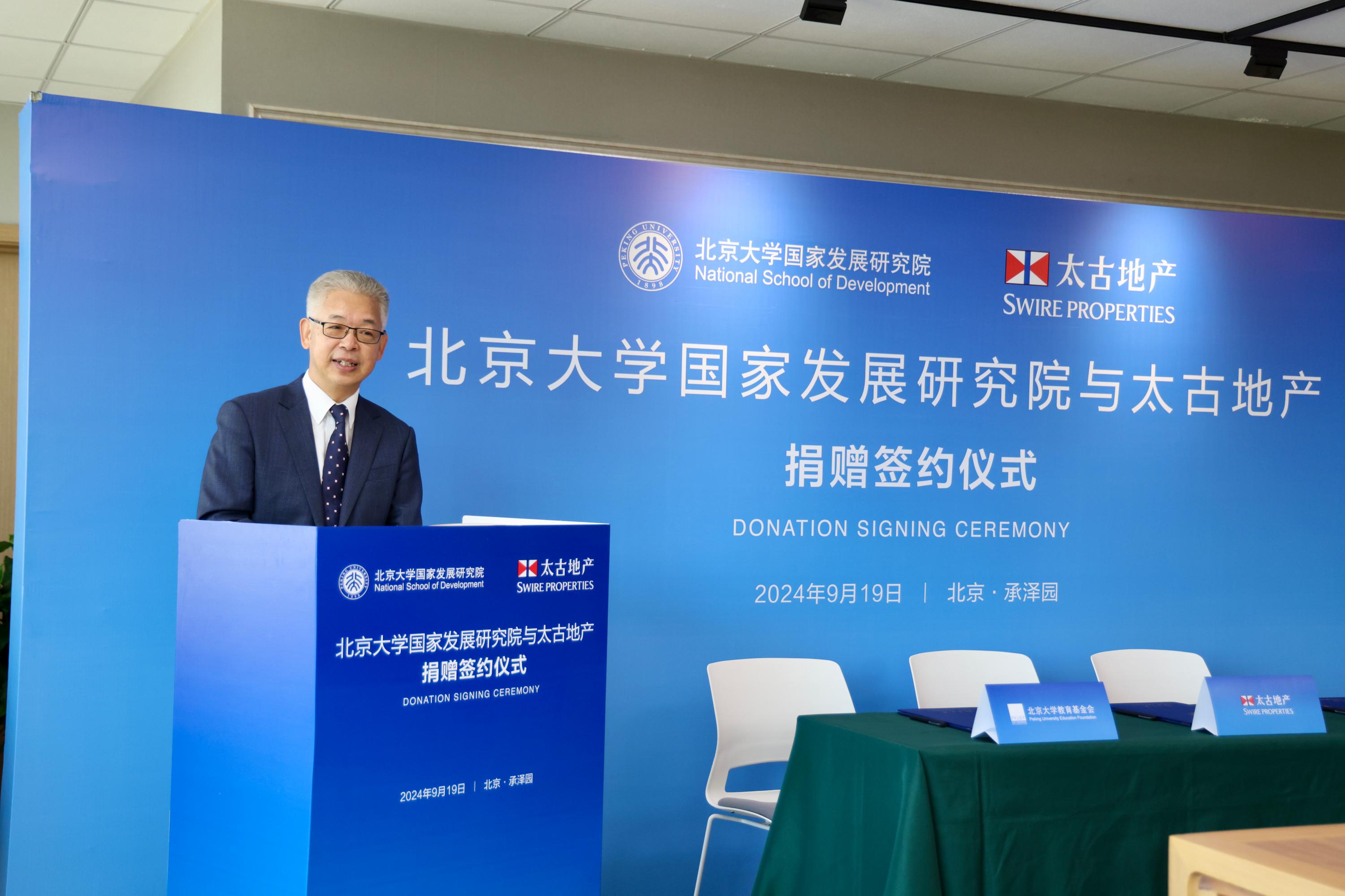 2024年9月19日上午,北京大學(xué)國(guó)家發(fā)展研究院與太古地產(chǎn)在承澤園333會(huì)議室舉行捐贈(zèng)簽約儀式。太古地產(chǎn)將捐贈(zèng)資金用于北京大學(xué)國(guó)家發(fā)展研究院基礎(chǔ)設(shè)施的改善。