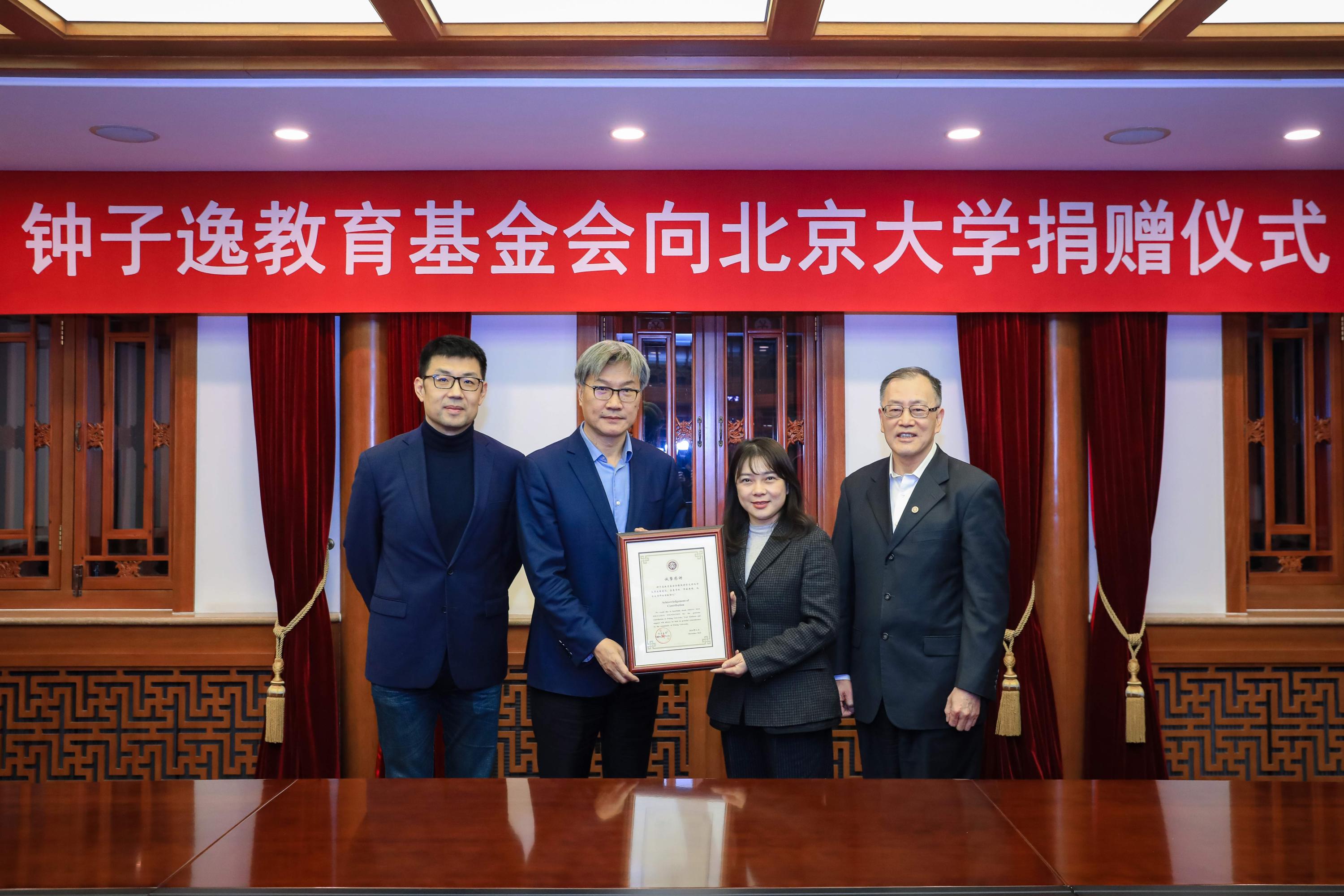 12月12日,由知名企業(yè)家鐘睒睒先生發(fā)起創(chuàng)立的鐘子逸教育基金會向北京大學捐贈儀式在北京大學臨湖軒舉行。杭州市西湖區(qū)鐘子逸教育基金會捐資支持“北京大學-錢塘基礎科學發(fā)展計劃”,助力北京大學教育事業(yè)的發(fā)展,推動中國的物質科學和生命科學走向世界一流。