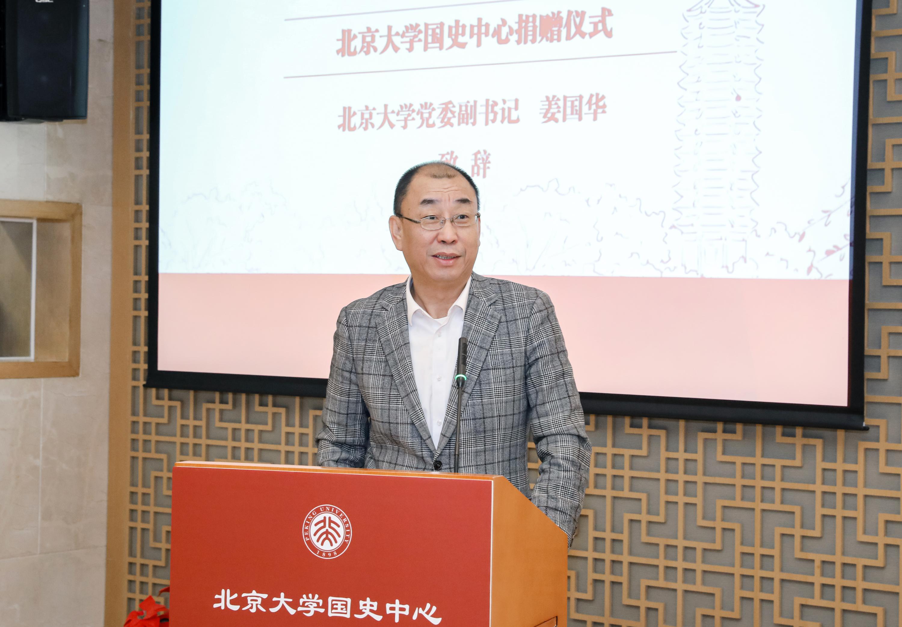 姜國華介紹了國史中心的設立背景和發(fā)展情況。他指出,國史中心在做好“典藏當代史料、書寫當代信史”的基礎上,著力“講好當代故事”,成立近五年來取得了豐碩成果。他表示,此次捐贈展現(xiàn)了北大校友的家國情懷和奉獻精神,將為中心后續(xù)發(fā)展打下良好基礎,期待未來雙方攜手為北大的發(fā)展持續(xù)貢獻力量。