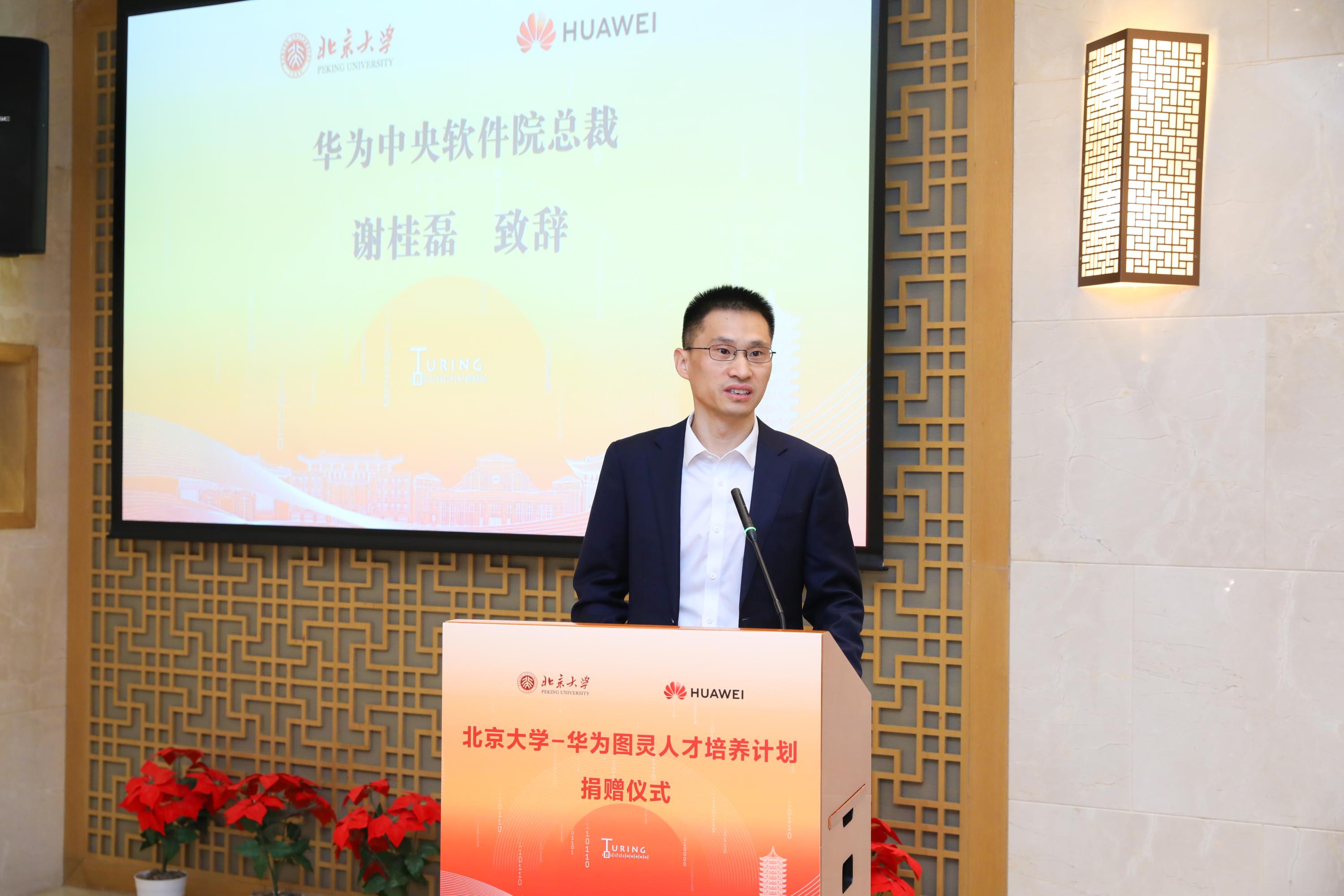 華為中央軟件院總裁謝桂磊、軟件Fellow 陳海波,北京研究所所長姜向中,中央軟件院歐拉部部長萬漢陽,中央軟件院高斯部部長李修昶,北京研究所人力資源部部長周菲,中央軟件院人力資源部部長趙章淳,中央軟件院編程語言實驗室主任馮新宇,中央軟件院OS內(nèi)核實驗室主任賈寧,與北京大學(xué)副校長、教務(wù)長、教育基金會副理事長王博,教務(wù)部部長傅綏燕,教育基金會秘書長、校辦產(chǎn)業(yè)黨工委書記兼管委會辦公室主任李宇寧,計算機(jī)學(xué)院院長胡振江,信息科學(xué)技術(shù)學(xué)院院長侯士敏,研究生院培養(yǎng)辦公室副主任瞿毅臻,圖靈班師生代表等共同出席。北京大學(xué)計算機(jī)學(xué)院副院長郭耀主持儀式。