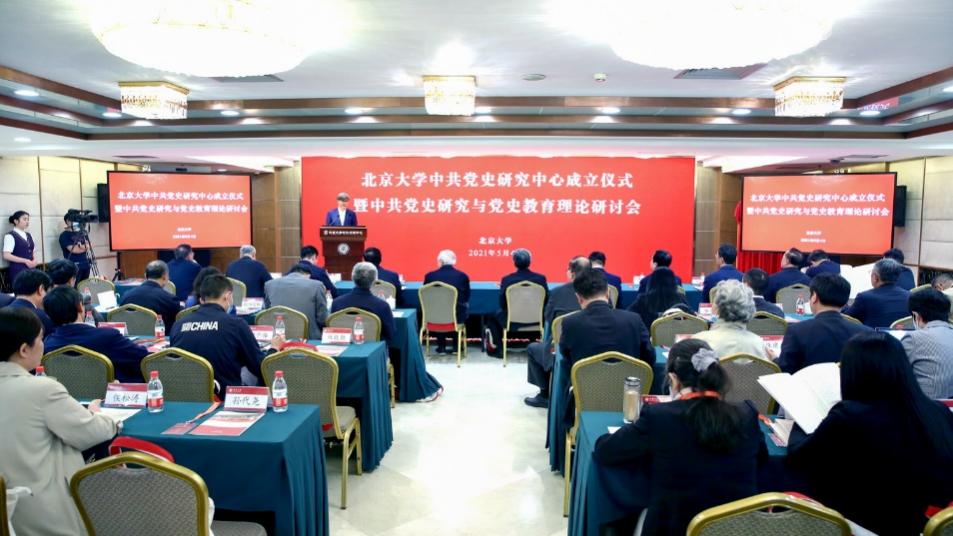 2021年5月4日下午,北京大學(xué)中共黨史研究中心成立儀式暨中共黨史研究與黨史教育理論研討會(huì)在北京大學(xué)英杰交流中心舉行。北京大學(xué)黨委書記邱水平,校長郝平,副校長王博,校長助理、秘書長孫慶偉,校內(nèi)相關(guān)院系、職能部門負(fù)責(zé)人以及師生代表共一百余人參加。成立儀式由王博主持。