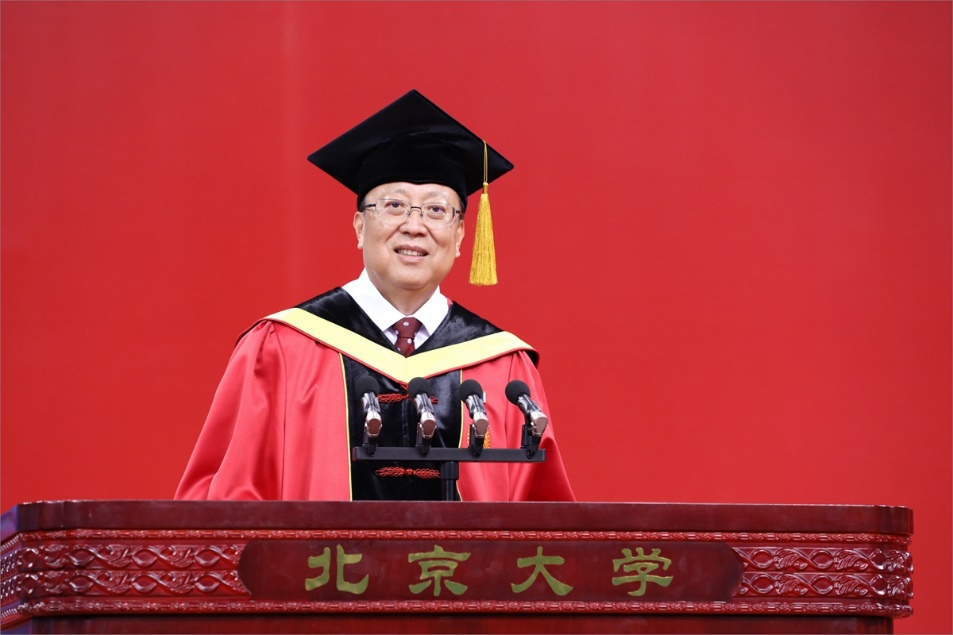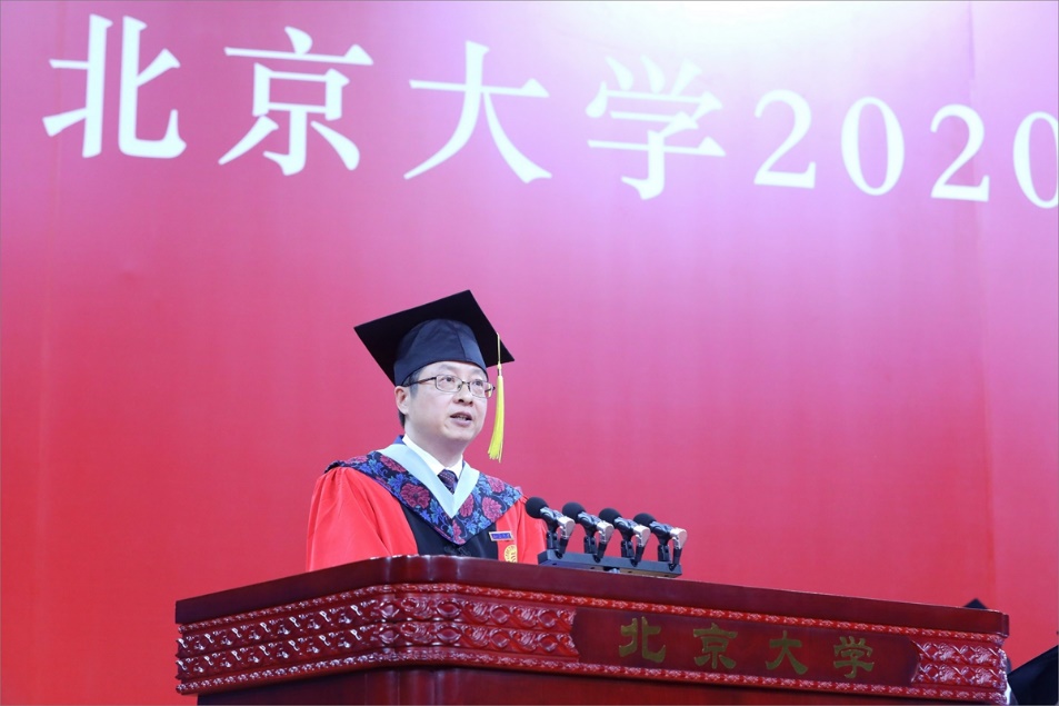 郝平代表學(xué)校全體師生員工熱烈歡迎同學(xué)們回家。他表示,今天是北京大學(xué)建校123周年的校慶日,也是五四運(yùn)動(dòng)102周年,舉行這場(chǎng)學(xué)位授予儀式,具有特殊的意義。今天的相聚來(lái)之不易、彌足珍貴,正是在以習(xí)近平同志為核心的黨中央的堅(jiān)強(qiáng)領(lǐng)導(dǎo)下,我們黨團(tuán)結(jié)帶領(lǐng)全國(guó)人民,取得了抗擊新冠肺炎疫情斗爭(zhēng)重大勝利的結(jié)果。在這場(chǎng)艱苦卓絕的歷史大考中,無(wú)數(shù)北大人和全國(guó)眾多抗疫英雄一道,不畏艱險(xiǎn)、沖鋒在前、舍生忘死,展現(xiàn)了偉大的抗疫精神。郝平向在這場(chǎng)戰(zhàn)斗中付出辛勤努力和做出巨大犧牲的人們致以最崇高的敬意。
