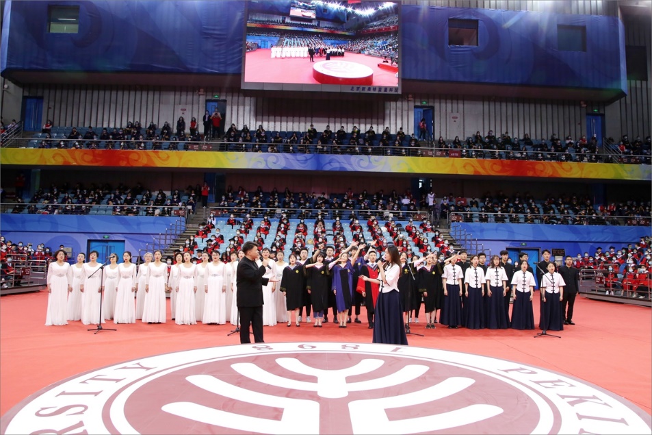 “燕園情,千千結(jié)。”儀式最后,全體師生齊唱《燕園情》。伴隨著熟悉的旋律響起,畢業(yè)生們即將開(kāi)啟新的航程。