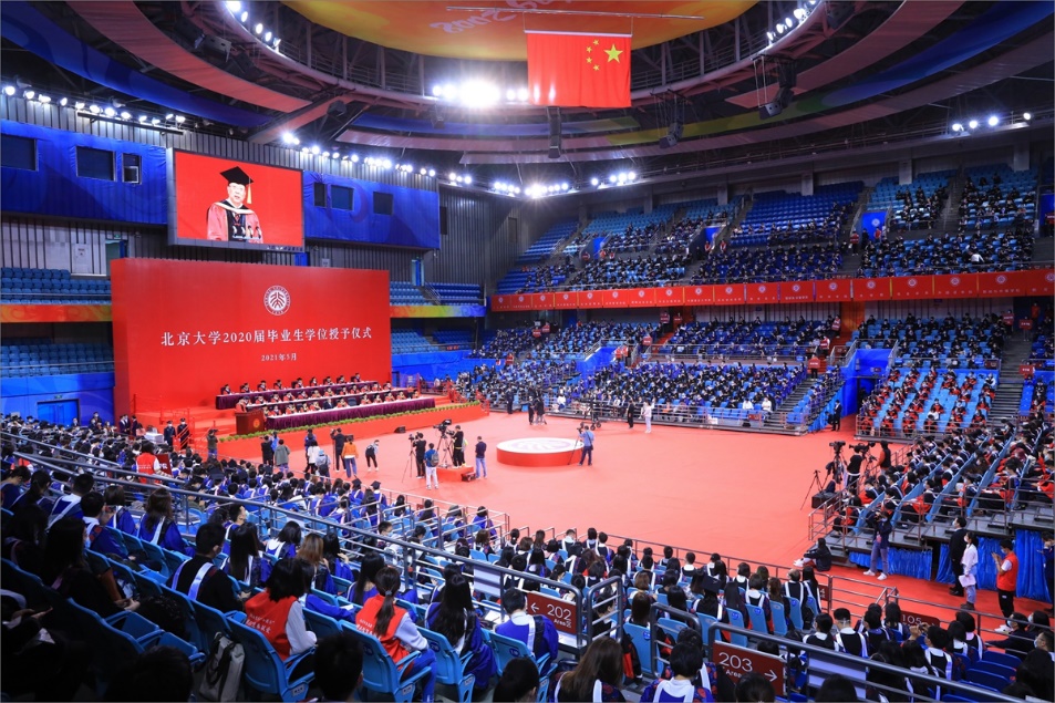2021年5月4日上午,北京大學(xué)在邱德拔體育館舉辦2020屆畢業(yè)生專(zhuān)場(chǎng)學(xué)位授予儀式。北京大學(xué)黨委書(shū)記邱水平、校長(zhǎng)郝平,北京市委教育工委常務(wù)副書(shū)記鄭吉春,校領(lǐng)導(dǎo)班子成員,校學(xué)位評(píng)定委員會(huì)各分會(huì)主席出席。院系職能部門(mén)負(fù)責(zé)人,教職工、中學(xué)校長(zhǎng)、捐贈(zèng)方代表等參加儀式。領(lǐng)導(dǎo)嘉賓和北大師生員工齊聚一堂,共同見(jiàn)證特殊時(shí)刻,為畢業(yè)生送上祝福。儀式由常務(wù)副校長(zhǎng)龔旗煌主持。