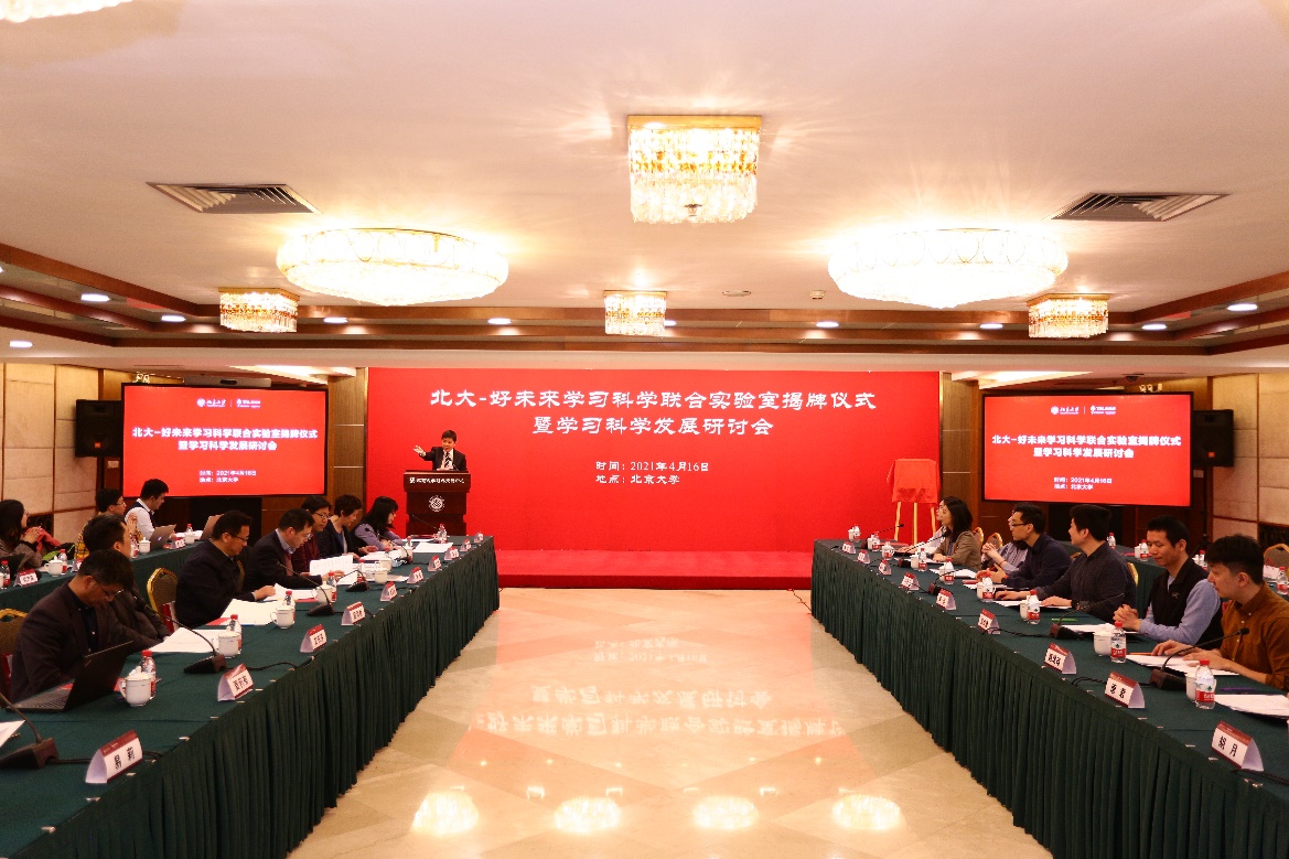 2021年4月16日上午,北大—好未來(lái)學(xué)習(xí)科學(xué)聯(lián)合實(shí)驗(yàn)室(PKU-TALJoint Lab.of Learning Sciences,以下簡(jiǎn)稱(chēng)“學(xué)習(xí)科學(xué)聯(lián)合實(shí)驗(yàn)室”)揭牌及學(xué)習(xí)科學(xué)發(fā)展研討會(huì)在北京大學(xué)英杰交流中心舉行。北京大學(xué)教育學(xué)院黨委書(shū)記、院長(zhǎng)閻鳳橋教授,社會(huì)科學(xué)部副主任文東茅教授,科技開(kāi)發(fā)部部長(zhǎng)姚衛(wèi)浩,教育學(xué)院副院長(zhǎng)哈巍,教育學(xué)院教育技術(shù)系主任賈積有等20余位北大師生代表,好未來(lái)集團(tuán)創(chuàng)始人、CEO張邦鑫,好未來(lái)集團(tuán)技術(shù)副總裁李非,小猴啟蒙AI項(xiàng)目部負(fù)責(zé)人趙璞錚,學(xué)而思網(wǎng)校副總裁唐君等10余位好未來(lái)代表出席。北京大學(xué)教育學(xué)院學(xué)習(xí)科學(xué)實(shí)驗(yàn)室執(zhí)行主任尚俊杰主持會(huì)議。