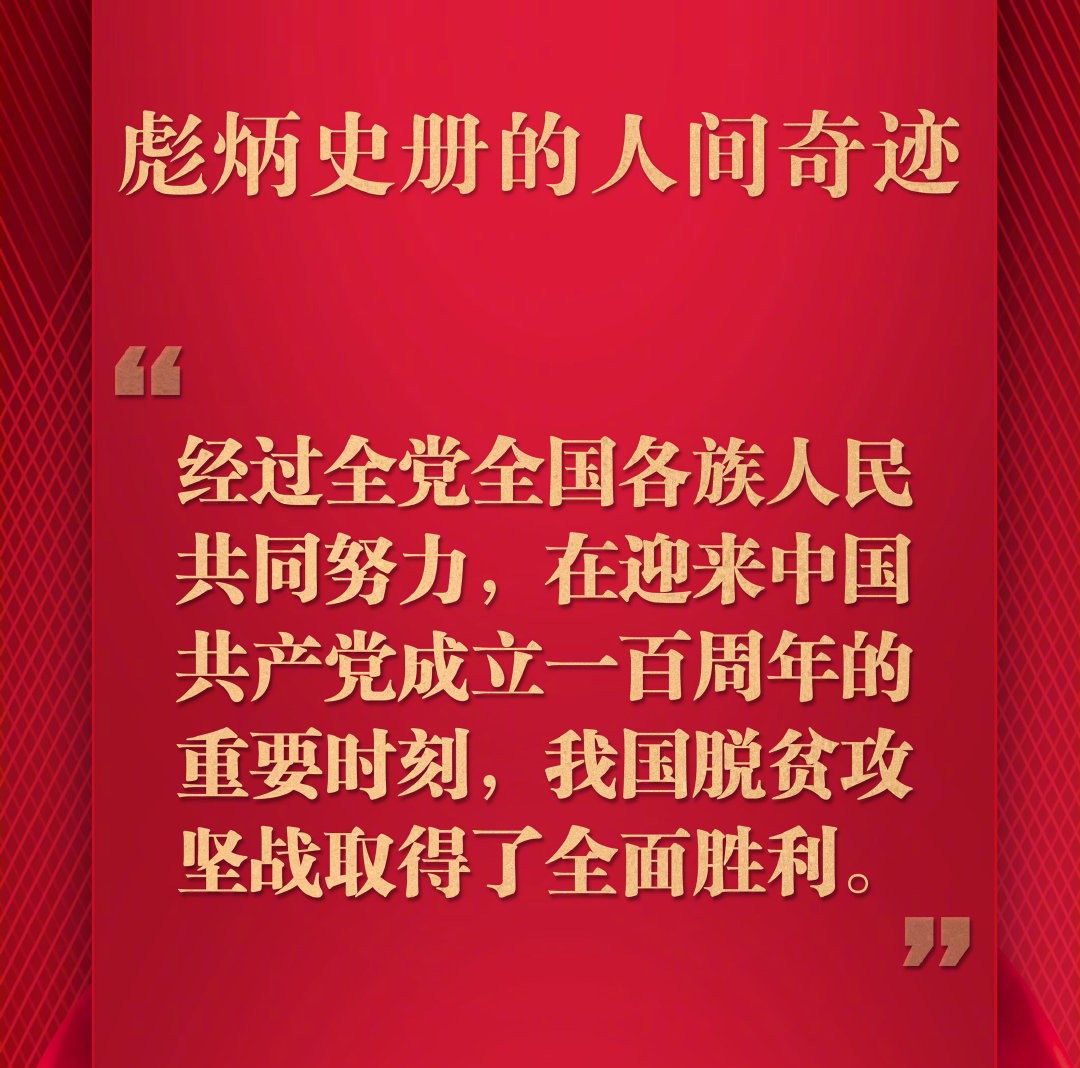 習(xí)近平在全國(guó)脫貧攻堅(jiān)總結(jié)表彰大會(huì)上發(fā)表重要講話,莊嚴(yán)宣告,經(jīng)過(guò)全黨全國(guó)各族人民共同努力,在迎來(lái)中國(guó)共產(chǎn)黨成立一百周年的重要時(shí)刻,我國(guó)脫貧攻堅(jiān)戰(zhàn)取得了全面勝利,現(xiàn)行標(biāo)準(zhǔn)下9899萬(wàn)農(nóng)村貧困人口全部脫貧,832個(gè)貧困縣全部摘帽,12.8萬(wàn)個(gè)貧困村全部出列,區(qū)域性整體貧困得到解決,完成了消除絕對(duì)貧困的艱巨任務(wù),創(chuàng)造了又一個(gè)彪炳史冊(cè)的人間奇跡!這是中國(guó)人民的偉大光榮,是中國(guó)共產(chǎn)黨的偉大光榮,是中華民族的偉大光榮!