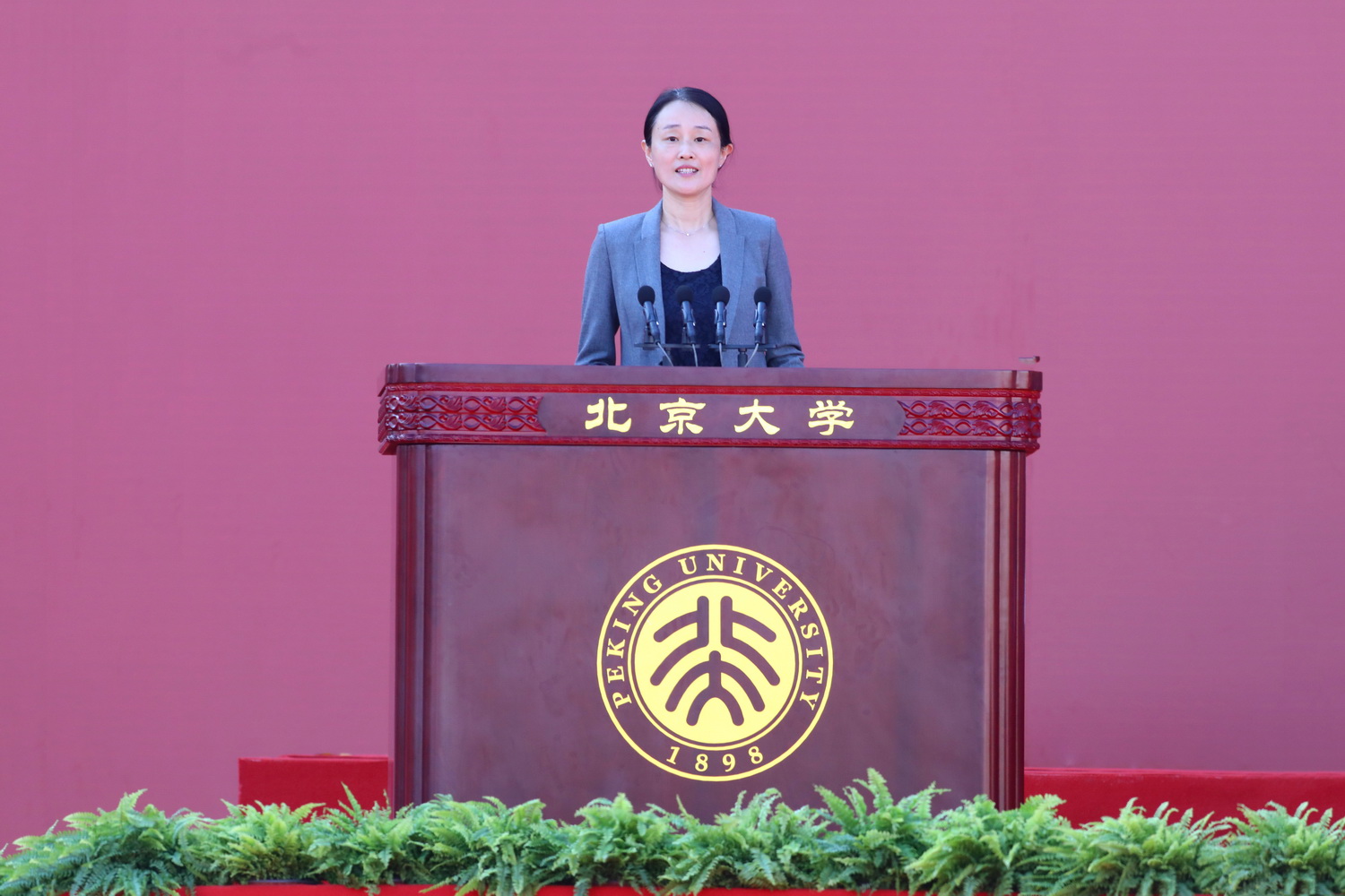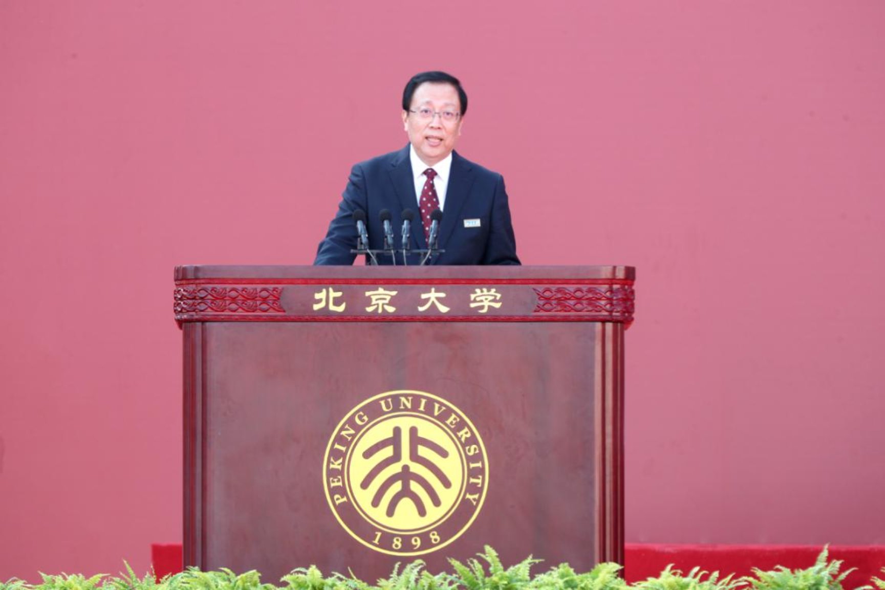 郝平代表學校全體師生員工,向各位新同學表示歡迎和祝賀。他指出,今年的疫情抗擊斗爭是一堂生動的人生課、社會課,同學們不懼風雨,經(jīng)受住了考驗,并且與國家和民族一同進步成長。同學們進入校門的那一刻起,“北大人”就成為了新身份,這也意味著新責任、新使命。北大厚重的歷史、優(yōu)良的傳統(tǒng)都將是同學們拼搏奮斗的動力源泉,將會指引大家明確成長的方向、探尋成長的道路。