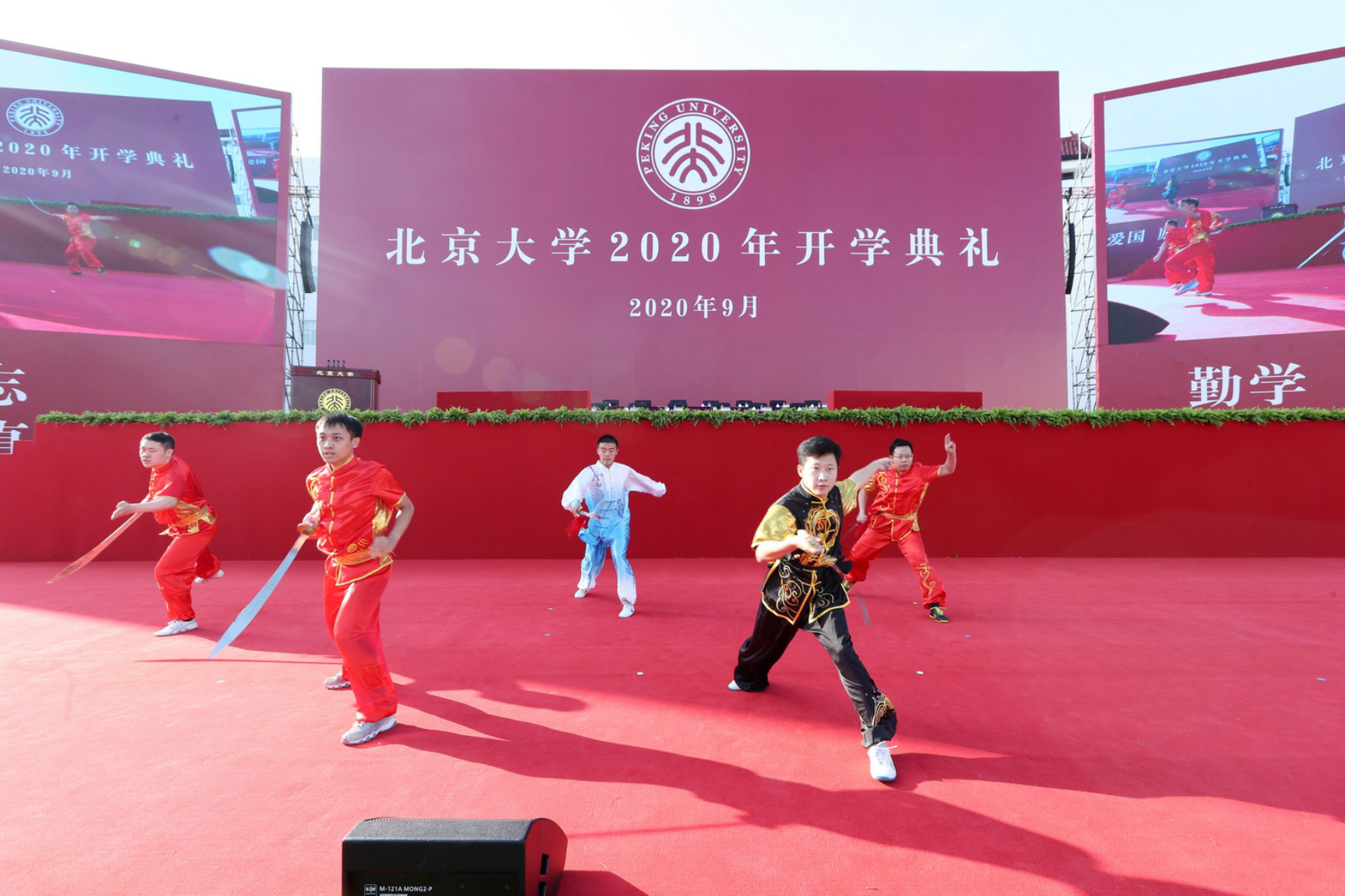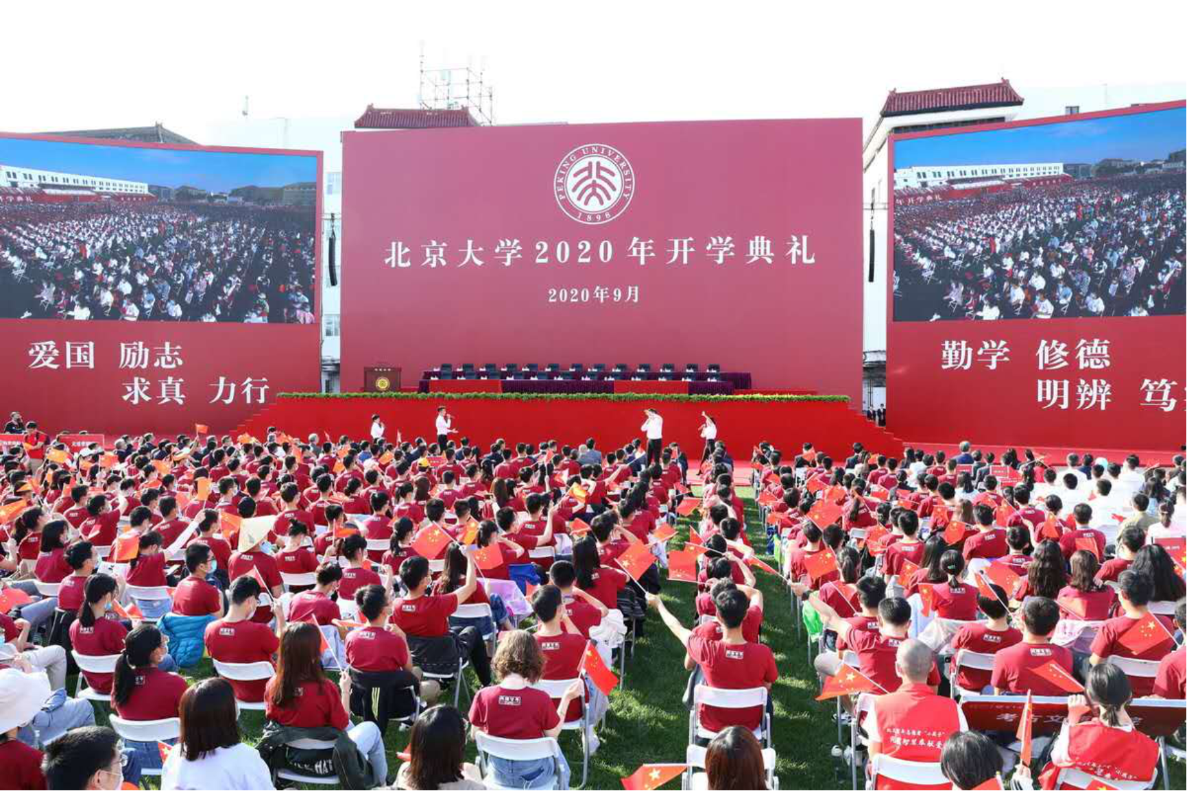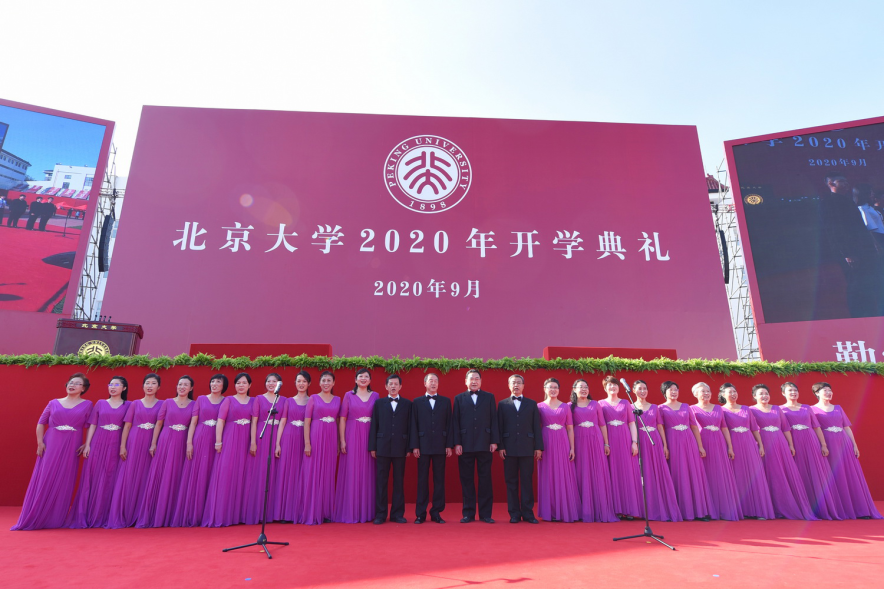 全體起立、奏唱國歌,升旗儀式之后,北京大學2020年開學典禮正式開始。