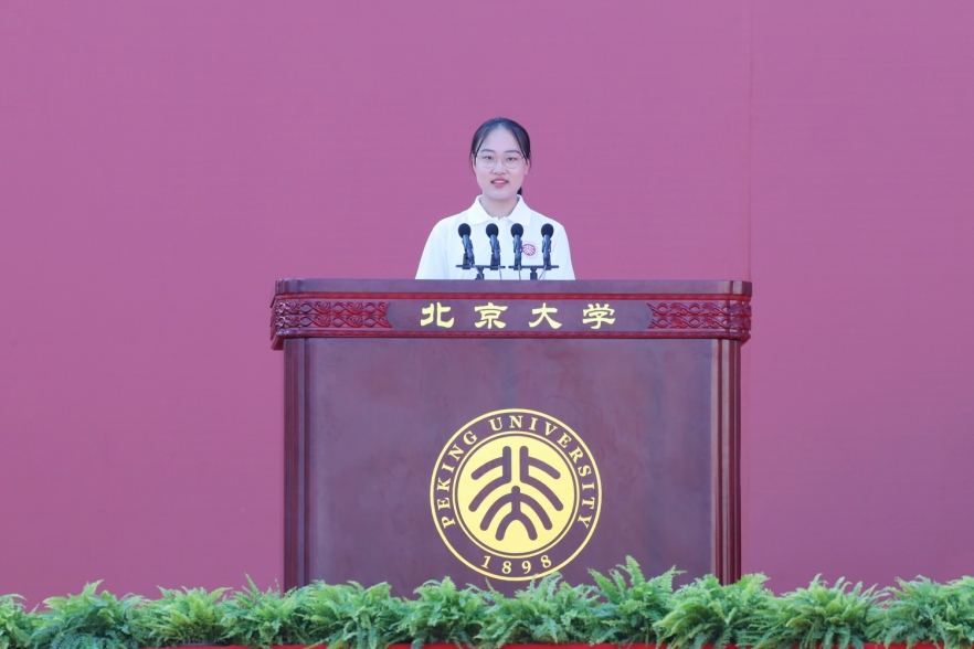 新生代表、哲學系2020級博士生王棟用魯迅先生的名言“無窮的遠方,無數(shù)的人們,都和我有關”作為發(fā)言的題目。本科期間,在完成了主修專業(yè)的基礎上,大量選修或旁聽了其他專業(yè)課程,拓展了視野和思考深度;碩士期間,幫助外國同學和更多外國友人了解和認識中國;即將開始的博士階段,選擇通過哲學思考,去挖掘和傳遞最深邃的中國智慧——一步步的成長印跡中,王棟將自己“與遠方連接在一起”。北大人的家國情懷,成為他——一個新北大“精神小伙”未來努力的方向。