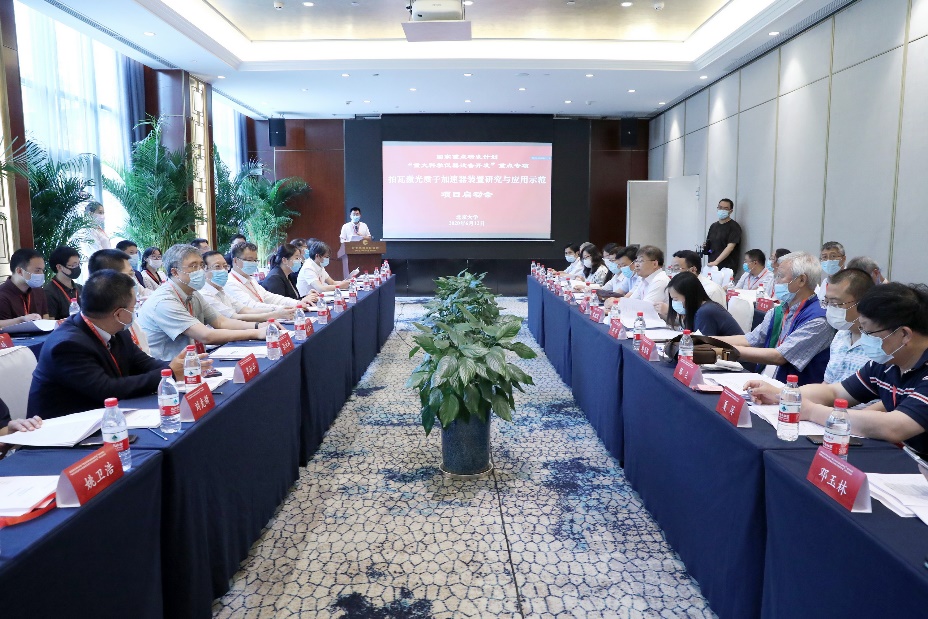 2020年6月12日,由北京大學(xué)牽頭承擔(dān)的國(guó)家重點(diǎn)研發(fā)計(jì)劃“重大科學(xué)儀器設(shè)備開(kāi)發(fā)”重點(diǎn)專項(xiàng)“拍瓦激光質(zhì)子加速器裝置研究與應(yīng)用示范”項(xiàng)目啟動(dòng)會(huì)在北大召開(kāi)。會(huì)議以現(xiàn)場(chǎng)出席和網(wǎng)絡(luò)視頻出席相結(jié)合的方式舉行。科技部高技術(shù)研究發(fā)展中心、科技部高新技術(shù)司、教育部科學(xué)技術(shù)司、北京市發(fā)展和改革委員會(huì)、北京市大興區(qū)人民政府、廣州市白云區(qū)人民政府等主管部門(mén)和合作地方領(lǐng)導(dǎo),北京大學(xué)校長(zhǎng)郝平、副校長(zhǎng)張平文,北大相關(guān)職能部門(mén)負(fù)責(zé)人,項(xiàng)目責(zé)任專家組、總體專家組、技術(shù)專家組、用戶委員會(huì)部分成員,以及各課題負(fù)責(zé)人和部分骨干成員現(xiàn)場(chǎng)出席。會(huì)議由北京大學(xué)科學(xué)研究部部長(zhǎng)張寧教授主持。