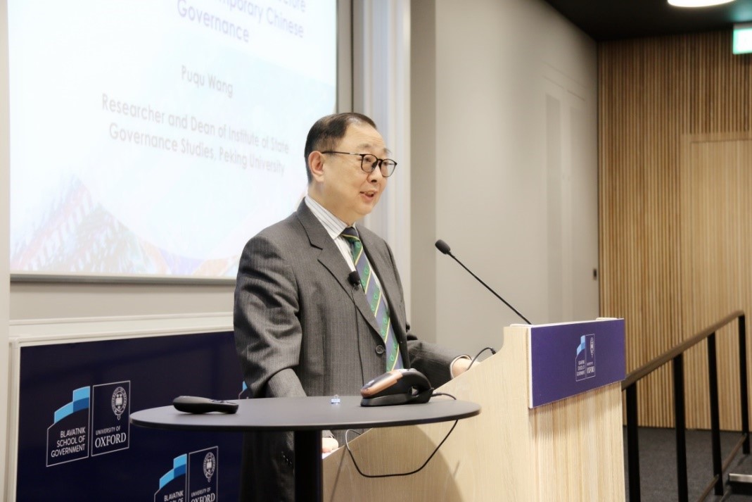 在舉世關(guān)注中國(guó)共產(chǎn)黨十九屆四中全會(huì)公告及改革目標(biāo)的背景下,北京時(shí)間2019年11月7日,應(yīng)牛津大學(xué)布拉瓦尼克政府學(xué)院院長(zhǎng)Ngaire Woods教授邀請(qǐng),北京大學(xué)國(guó)家治理研究院院長(zhǎng)王浦劬教授,在牛津大學(xué)發(fā)表題為“向世界闡述新時(shí)代中國(guó)黨政結(jié)構(gòu)和功能機(jī)制的改革機(jī)理”公開演講。Ngaire Woods、布拉瓦尼克政府學(xué)院專家學(xué)者、牛津大學(xué)在讀學(xué)生等100余人參加了本次講座。講座由院長(zhǎng)Ngaire Woods主持。