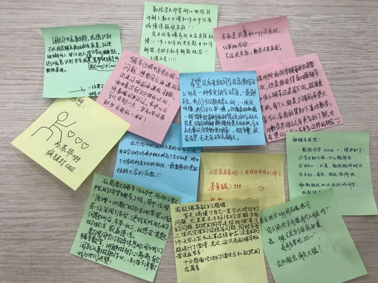 每次輔導結束后,都有不少被輔導的同學留下便利貼,表達自己的感恩,贊嘆志愿者的耐心友善,有的還會特意點名表揚。你來我往之間,產(chǎn)生過不少“佳話”,有更進一步的友誼,也有不期而至的愛戀。