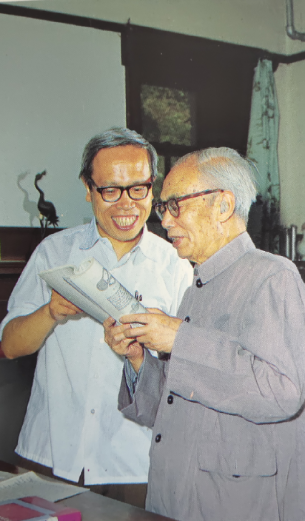 數(shù)學(xué)系教授江澤涵(右)與姜伯駒(左)一起討論問題