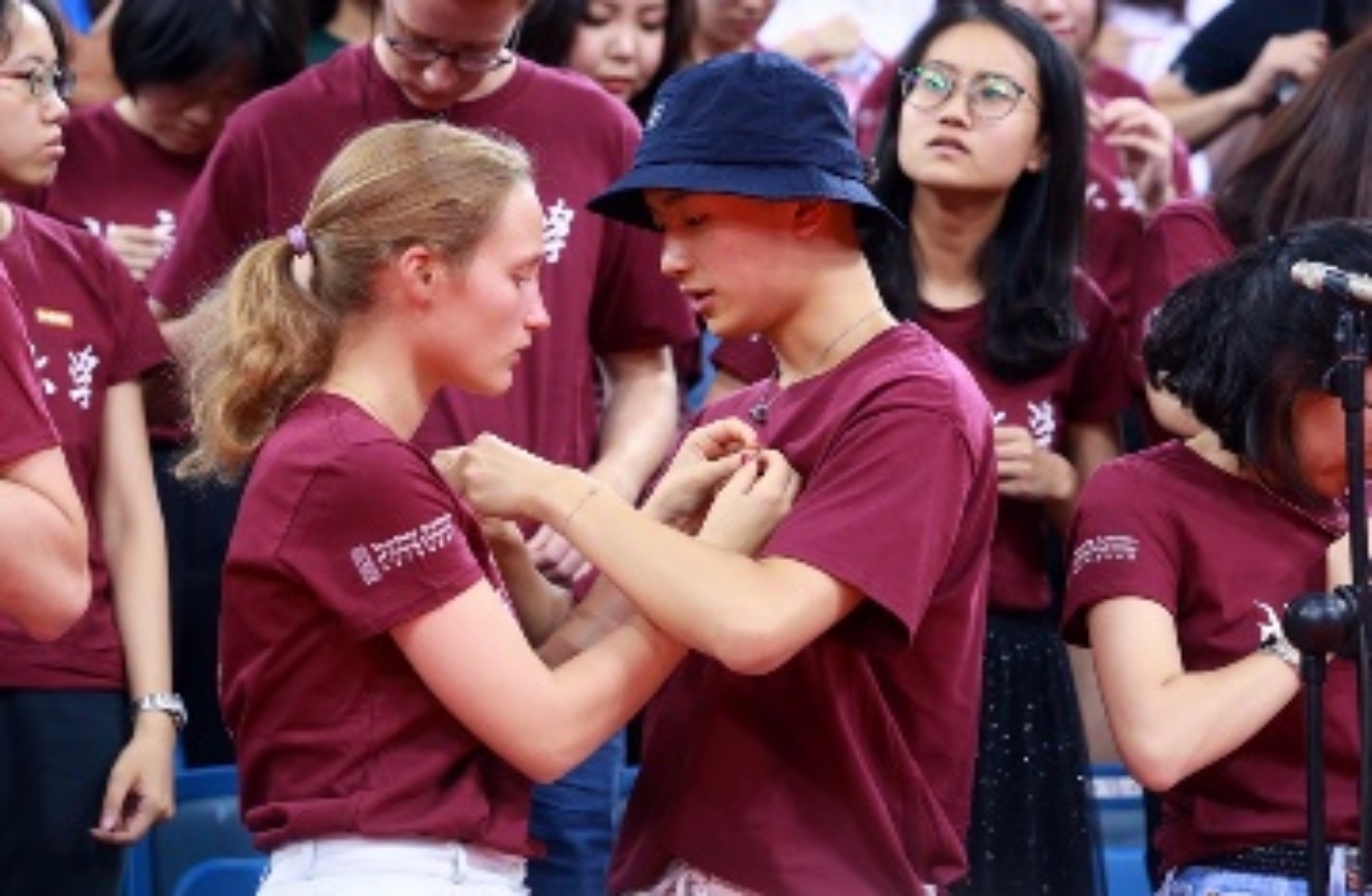 2019級(jí)研究生新生全體起立,在現(xiàn)場(chǎng)師長(zhǎng)的共同見(jiàn)證下佩戴北大校徽。從這一刻起,他們將愉快地開(kāi)啟探索、發(fā)現(xiàn)和創(chuàng)造未來(lái)的大學(xué)旅程,也意味著肩負(fù)起北大人的使命與責(zé)任。北京大學(xué)2019年研究生開(kāi)學(xué)典禮在全場(chǎng)齊唱《歌唱祖國(guó)》的歌聲中落下帷幕。