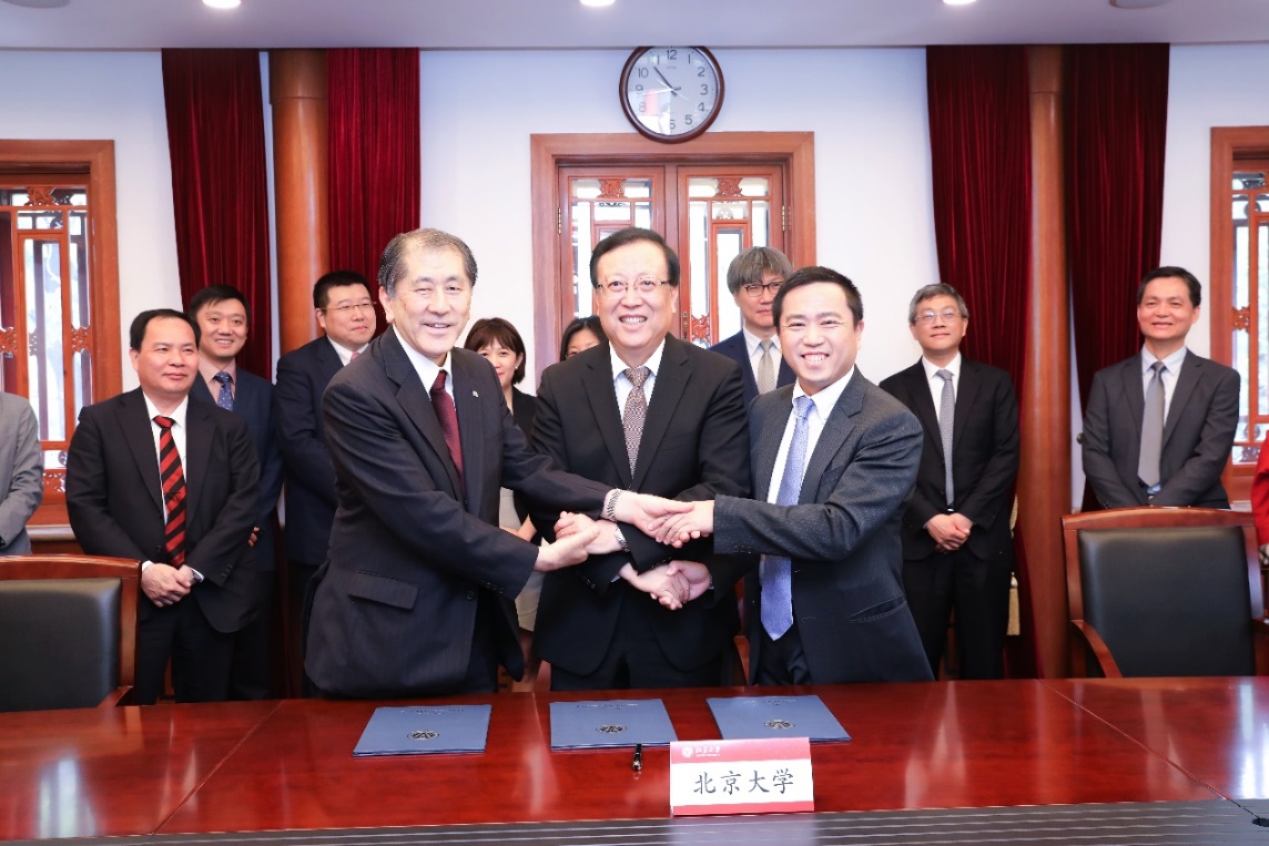 6月11日,北京大學(xué)、早稻田大學(xué)、康師傅控股有限公司三方合作簽約儀式在北京大學(xué)臨湖軒舉行。北京大學(xué)校長(zhǎng)郝平、早稻田大學(xué)校長(zhǎng)田中愛治、康師傅控股有限公司董事長(zhǎng)魏宏名出席并簽署協(xié)議。