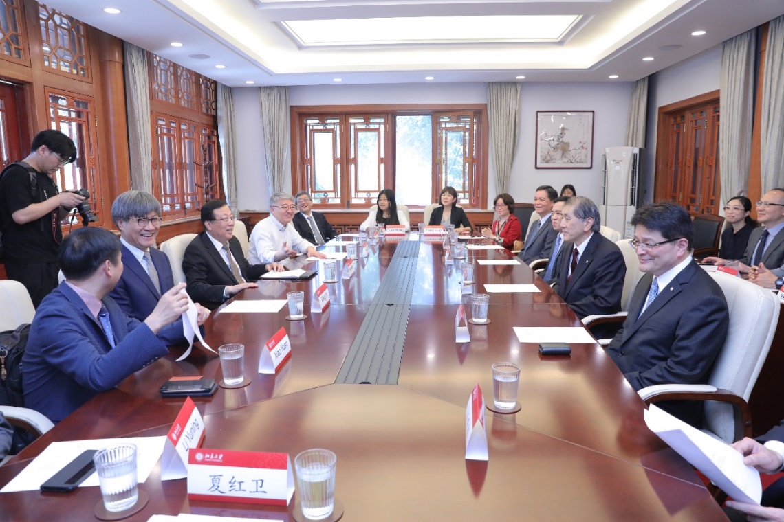 這是田中愛治第六次訪問北京大學(xué),幾十年來親身感受到中國(guó)及北大的巨大變化。他表示,早大與北大合作關(guān)系悠久,早大、北大、康師傅控股近十年來在人才培養(yǎng)、校園文化建設(shè)等方面也進(jìn)行了卓有成效的合作。田中愛治希望今后可以繼續(xù)鞏固并加深三方的友誼,進(jìn)一步推動(dòng)合作。