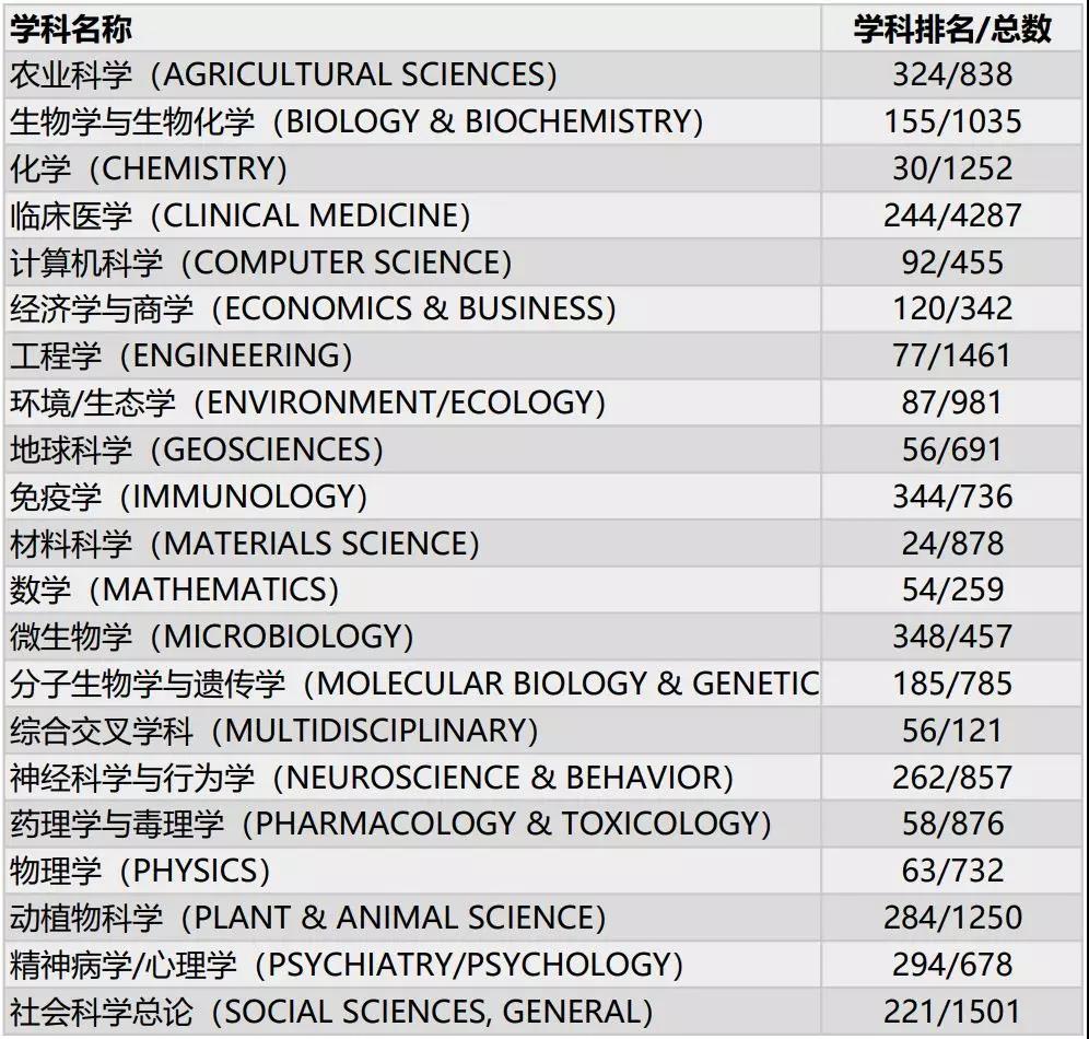 其中化學(xué)、臨床醫(yī)學(xué)、工程學(xué)、環(huán)境/生態(tài)學(xué)、地球科學(xué)、材料科學(xué)、藥理學(xué)與毒理學(xué)和物理學(xué)八個(gè)學(xué)科,躋身全球排名前列;經(jīng)濟(jì)學(xué)與商學(xué)、數(shù)學(xué)和社會科學(xué)總論等學(xué)科處在國內(nèi)領(lǐng)先地位。