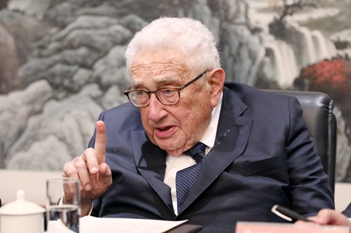 來(lái)自北大國(guó)際關(guān)系學(xué)院的20多名學(xué)生參加了本次座談會(huì),并踴躍向基辛格提問(wèn)。在回答“如何突破由于政治問(wèn)題過(guò)于宏大而產(chǎn)生距離感”以及“如何構(gòu)建國(guó)際政治的學(xué)習(xí)框架”等問(wèn)題時(shí),基辛格與同學(xué)們分享了自己移民、參軍的經(jīng)歷。他認(rèn)為,正是由于這樣復(fù)雜的人生經(jīng)歷,使他得以見(jiàn)到國(guó)際關(guān)系的許多方面。在基辛格看來(lái),國(guó)際政治并非只停留在理論,而更多的是實(shí)踐,學(xué)生在學(xué)習(xí)時(shí)也不應(yīng)只關(guān)注理論。在談到“中美是否有可能在應(yīng)對(duì)如難民、氣候變化等全球問(wèn)題時(shí)進(jìn)行合作”這一問(wèn)題時(shí),他認(rèn)為中美應(yīng)該加強(qiáng)對(duì)話,基于共同利益開(kāi)展合作。在原定問(wèn)答環(huán)節(jié)即將結(jié)束時(shí),仍然有許多同學(xué)希望獲得提問(wèn)機(jī)會(huì),95歲高齡的基辛格主動(dòng)提出再增加兩個(gè)提問(wèn)機(jī)會(huì)。在回答“中美有怎樣的新型國(guó)際關(guān)系”時(shí),他認(rèn)為外交部門應(yīng)該積極發(fā)揮作用,增進(jìn)彼此之間的聯(lián)系和交流,而北大學(xué)生更應(yīng)擔(dān)負(fù)起這樣的國(guó)際責(zé)任。