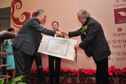 仲躋昆于北京大學,在第二屆中坤國際詩歌獎頒獎典禮上為阿拉伯當代著名詩人阿多尼斯頒獎