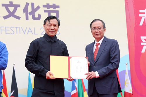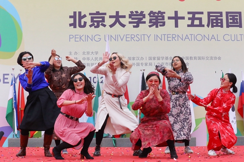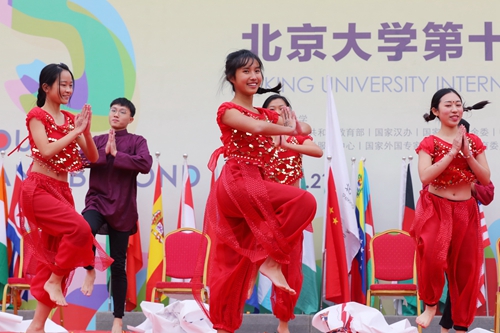 10月21日,北京大學(xué)第十五屆國際文化節(jié)在百周年紀(jì)念講堂廣場開幕。這次活動是學(xué)校一百二十周年校慶系列活動之一,主題為“北大因你、百廿又新”,來自60多個(gè)國家和地區(qū)的數(shù)千名學(xué)生參加了本屆國際文化節(jié)。教育部留學(xué)服務(wù)中心、孔子學(xué)院總部/國家漢辦、中國教育國際交流協(xié)會、北京市教委、中央美術(shù)學(xué)院等機(jī)構(gòu)、院校的領(lǐng)導(dǎo)和代表,尼泊爾、巴勒斯坦、阿富汗、伊朗、保加利亞、幾內(nèi)亞比紹、突尼斯等10多個(gè)國家的外國使節(jié),以及北京大學(xué)校長林建華、校友代表和師生代表出席了開幕式。