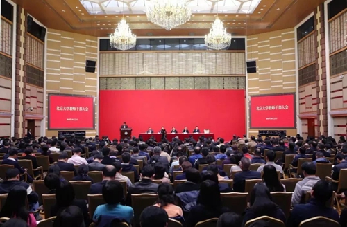 2018年10月23日下午,北京大學(xué)在英杰交流中心陽(yáng)光大廳舉行全校教師干部大會(huì),宣布中央關(guān)于北京大學(xué)黨委書(shū)記、校長(zhǎng)職務(wù)的任免決定:邱水平同志任北京大學(xué)黨委書(shū)記,郝平同志任北京大學(xué)校長(zhǎng)、不再擔(dān)任北京大學(xué)黨委書(shū)記職務(wù),林建華同志不再擔(dān)任北京大學(xué)校長(zhǎng)職務(wù)。中組部副部長(zhǎng)周祖翼,教育部黨組書(shū)記、部長(zhǎng)陳寶生,北京市委常委、組織部部長(zhǎng)魏小東出席大會(huì)并講話(huà)。在京的校黨政領(lǐng)導(dǎo)班子成員,學(xué)校老領(lǐng)導(dǎo)代表,各院系及附屬醫(yī)院黨政班子成員,職能部門(mén)、直屬附屬單位副職以上干部,院士、資深教授和中青年教師代表,各民主黨派負(fù)責(zé)人,離退休老同志代表,教代會(huì)代表,校辦產(chǎn)業(yè)負(fù)責(zé)人等近600人參加了會(huì)議。會(huì)議由郝平同志主持。