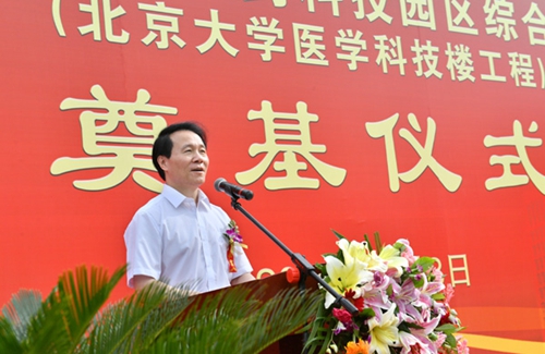 林建華在致辭中指出,醫(yī)藥科技園區(qū)綜合樓不僅是醫(yī)學(xué)部全體師生員工翹首以盼的喜事,也是北京大學(xué)整體規(guī)劃發(fā)展的重要節(jié)點(diǎn)。“北大醫(yī)學(xué)”有著廣闊的發(fā)展空間和良好的發(fā)展前景,希望廣大北大醫(yī)學(xué)人瞄準(zhǔn)未來(lái)醫(yī)學(xué)發(fā)展前沿,做好宏觀規(guī)劃和頂層設(shè)計(jì),注重學(xué)科的交叉整合與協(xié)同創(chuàng)新。學(xué)校將在資源配置、人才聘任、學(xué)科布局、機(jī)構(gòu)設(shè)置、資金投入等方面給予醫(yī)學(xué)部大力支持,與全體師生員工一起,努力把醫(yī)學(xué)部建設(shè)成為醫(yī)藥衛(wèi)生高層次人才培養(yǎng)、高水平科技創(chuàng)新、高質(zhì)量醫(yī)療服務(wù)的世界一流醫(yī)學(xué)中心。