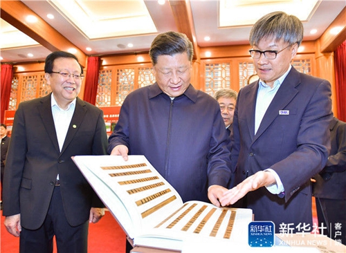 5月2日,中共中央總書記、國家主席、中央軍委主席習(xí)近平來到北京大學(xué)考察。這是習(xí)近平在北京大學(xué)國際馬克思主義文獻中心察看館藏馬克思主義典籍。新華社記者李學(xué)仁攝