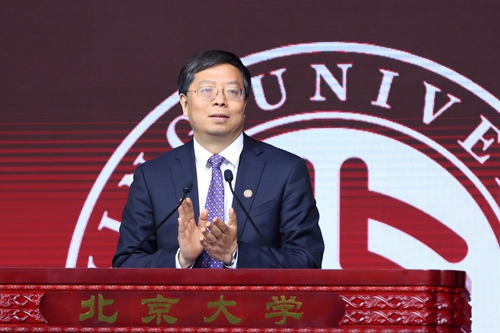 清華大學(xué)校長邱勇回顧了北大與祖國和人民共命運(yùn)、與時(shí)代和社會(huì)同前進(jìn)的歷史,與清華志同道合、砥礪同行的歲月。他表示,100多年來,北大為推動(dòng)國家富強(qiáng)、社會(huì)進(jìn)步和學(xué)術(shù)發(fā)展作出了卓越貢獻(xiàn),發(fā)揮了不可替代的作用,北大的“思想自由、兼容并包”與清華的“自強(qiáng)不息、厚德載物”交相輝映、相得益彰,兩校師生在學(xué)習(xí)和工作中緊密交流,結(jié)下深厚情誼。他指出,大學(xué)的發(fā)展關(guān)乎歷史,關(guān)乎現(xiàn)在,更關(guān)乎未來,在當(dāng)今這個(gè)創(chuàng)新變革加速、經(jīng)濟(jì)全球、文化多元化深入發(fā)展的時(shí)代,我們需要更加認(rèn)真地思考人類將心安何處,需要思考如何構(gòu)建人類共同的家園。育人弘道雙甲子,牢記使命,其命維新。他表示,相信“常為新”的北大一定會(huì)在中華民族偉大復(fù)興的歷史進(jìn)程中取得更加輝煌的成就。